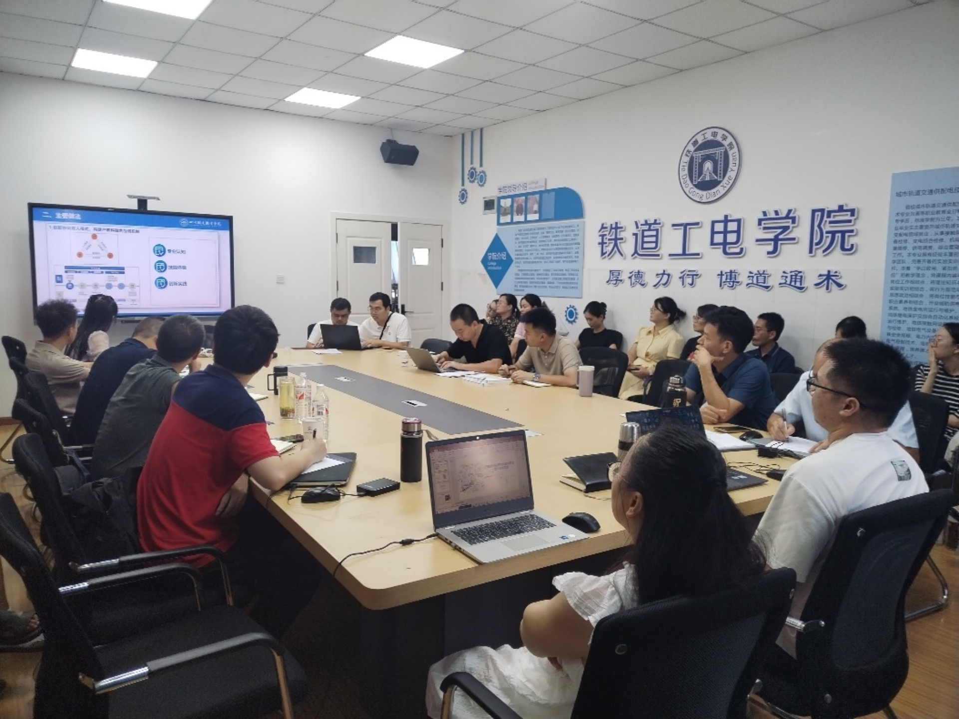 8月29日下午,铁道工电学院全体教职工在4楼会议室召开了以“全员说——说产教融合”为主题的2024年暑假大教研活动。此次活动由副院长董浩主持,中国铁路成都局集团有限公司(以下简称“成都铁路局”)3名专家参加。