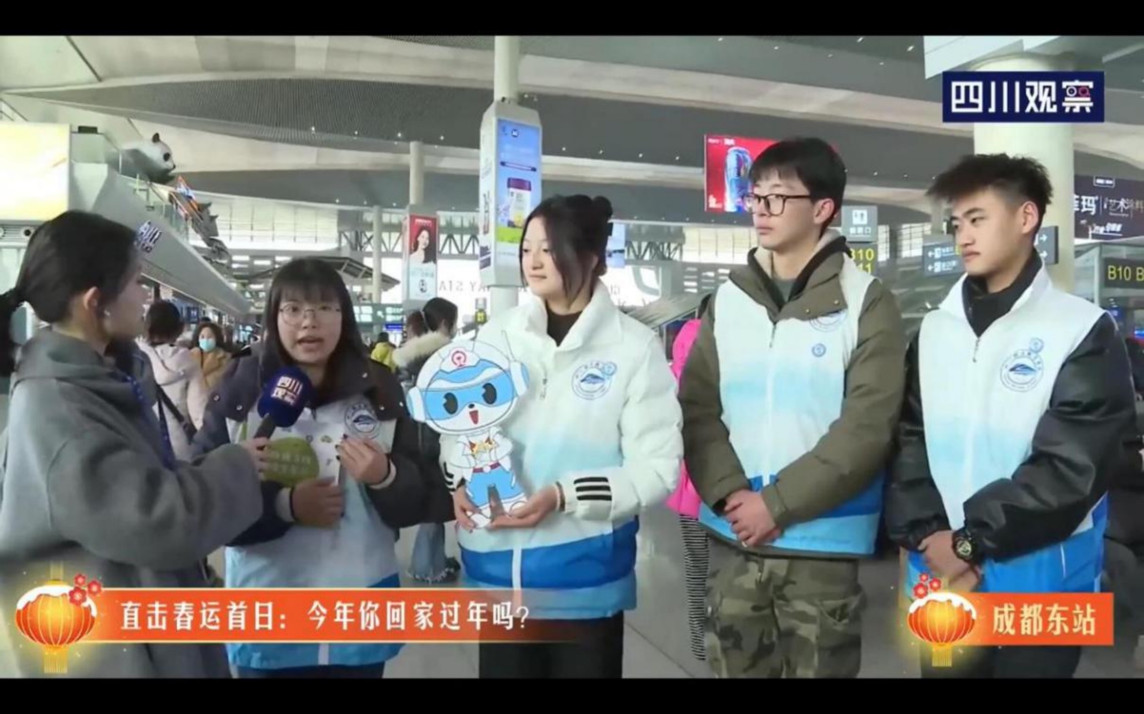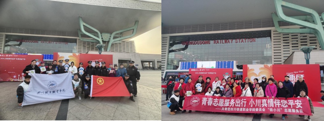1月26日,2024年春运正式拉开帷幕。中国铁路成都局集团有限公司成都客运段、成都东站、成都市总工会、成都地铁、汽车客运站、轨道公安等多家单位与beat365英国官方网站“铁小川”志愿团队合力动,共同举办了一场名为“春运暖程”的首日活动,铁道工电学院辅导员董衡、严川杰带领四名“铁小川”志愿者旨在为春运旅客传递铁路安全知识的接力棒,让回家之路写满“平安”“畅行”与“温暖”。