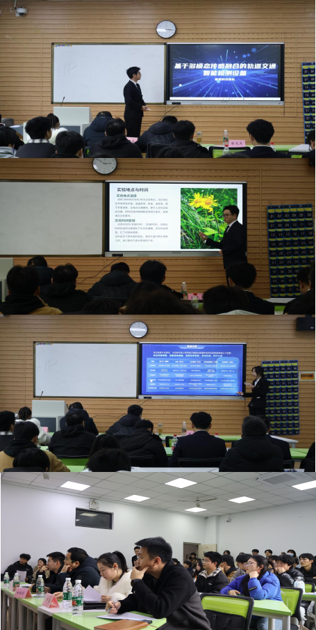 选拔赛分为路演和现场答辩两个环节,活动现场气氛热烈,参赛团队通过PPT演示、实物展示、答辩等形式展开激烈角逐。参赛作品紧密围绕轨道交通领域的技术革新需求,涌现出多项解决行业实际问题的创新成果。本次参赛作品中,七成以上采用人工智能、大数据等前沿技术,凸显学生将专业课知识与行业特点结合的实践能力。评审团从技术先进性、应用可行性、商业价值三大维度对作品进行盲审打分,并在答辩环节一针见血提出关键问题,从作品出发提出宝贵建议,师生面对面,搭建起展示青春智慧、碰撞创新火花的舞台。