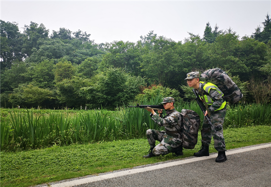 14:00队员继续行进。在行进中,领队组织队员进行简单的反恐营救人质模拟训练,培养锻炼战术队的团结协作能力和执行作战能力。