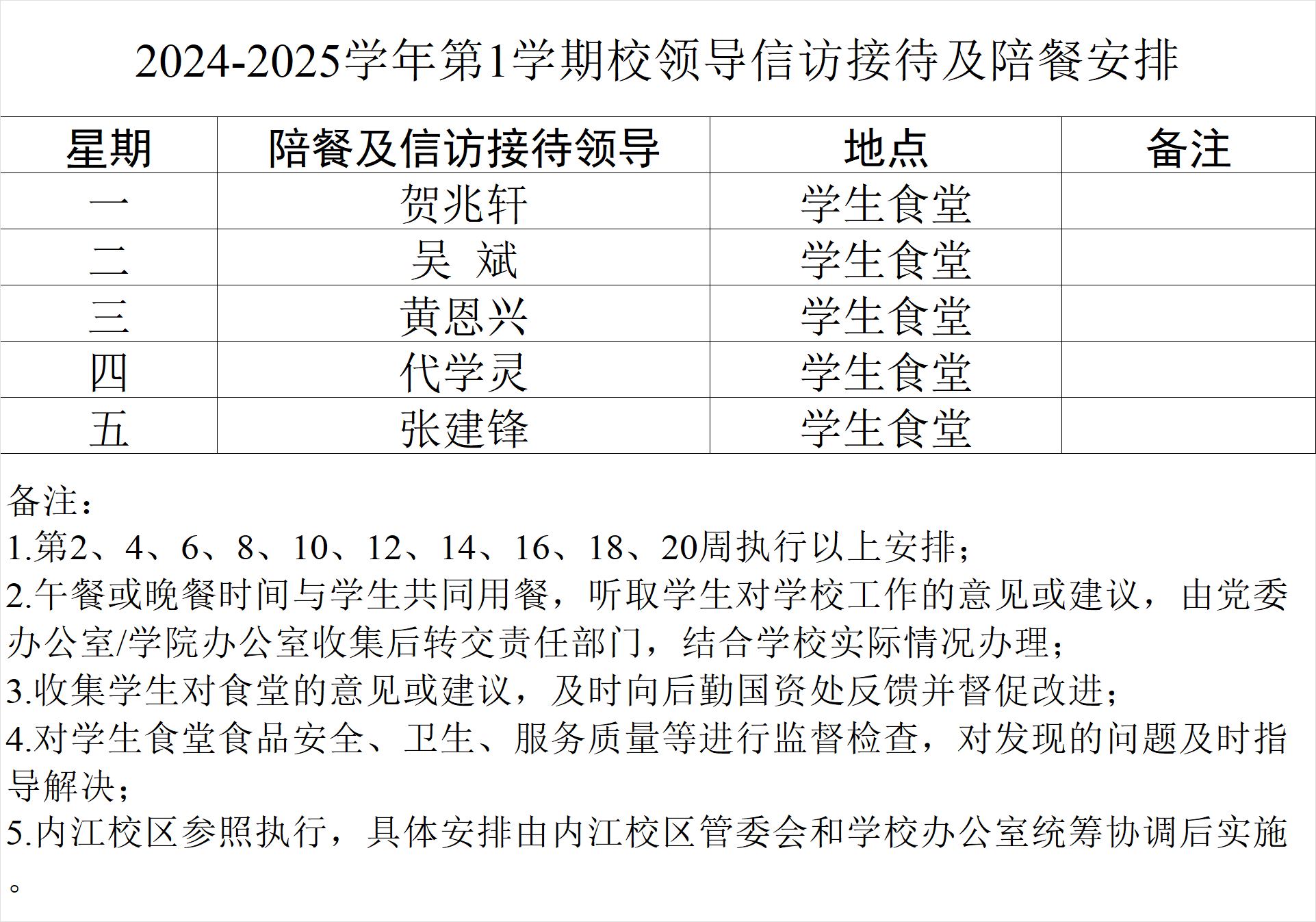 2024-2025学年第1学期校领导信访接待及陪餐安排