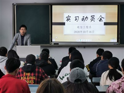 2020年10月16日上午,电信工程系在2205教室召开了实习动员会,党总支书记刘辉、副主任漆玉强、教学干事杜中彦、辅导员冯兴及参加顶岗实习的铁道信号自动控制16A1班的55名同学参加了此次动员会。