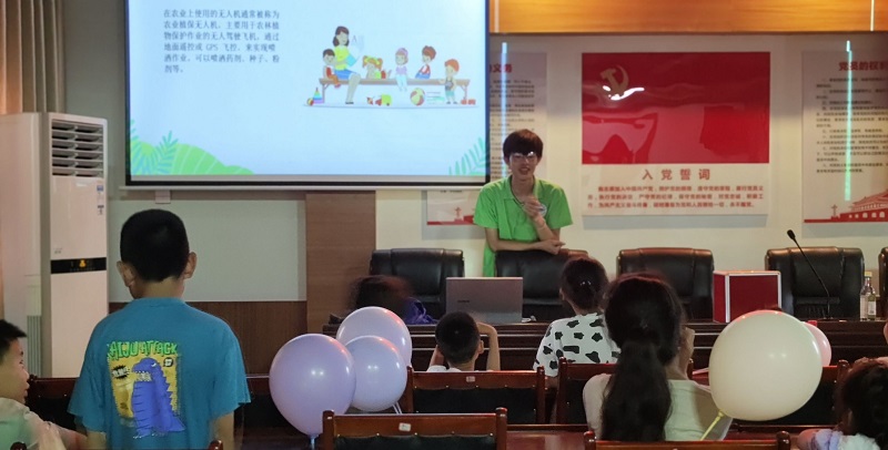 情系乡村儿童,点亮科普明灯。7月10日,团队组织先锋村3-10岁的孩子们开展“趣味农业科技启蒙知识小课堂”,旨在带领他们了解先进的农业技术和培养科学兴趣。团队成员使用“视频+PPT+亲自互动实验+提问”的方式为孩子们展现了植保无人机、河套灌区使用的灌溉系统,以及光伏养种植等技术,展示了如何提高农业生产效率和环境友好性,同时对互动科学实验和简单易懂的科普进行了讲解。在科普活动中,团队成员鼓励乡村儿童积极参与科学实践,倡导他们观察身边的事物,提出问题,寻找答案。