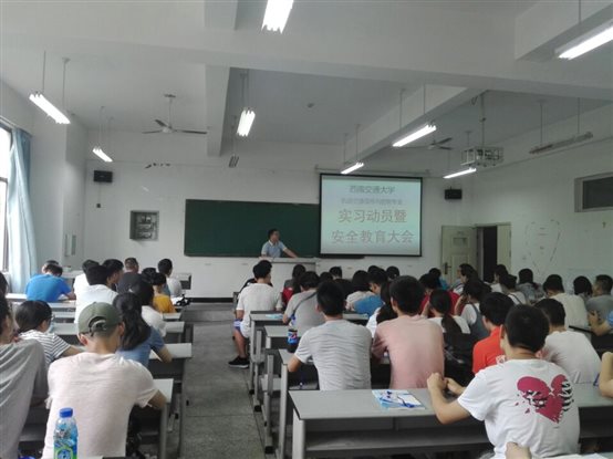 7月14日,西南交通大学信息科学与技术学院轨道交通信号与控制专业学生来我院开展实习。beat365官网教师杜中彦、周莹、陈龙、张晓鹏,西南交通大学实习领队教师谢刚及82名学生参加了实习动员及安全教育大会。