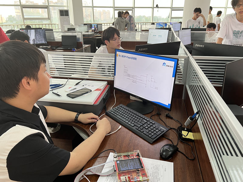 为积极探索校企联合培养创新型人才新模式,深化校企合作,6月12日至16日,电信工程学院与百科荣创(山东)科技发展有限公司共同探索开展了《龙芯1+X软硬件技术》课程的校企合作教学实训。企业讲师王敬涛、李心奥和学院专任教师王勇、罗旭共同担任指导教师。
