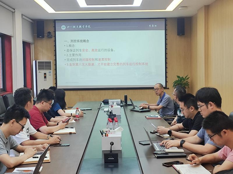 李康标代表学院与陈勇、曾科智等人针对企业需求、信号设计工作内容、培训交流、科研合作等方面进行了深入交流。陈勇表示,信号专业技术人员均要求研究生学历,职工内部培训会较多,可不定期到学校开展专题讲座。曾科智表示,科研合作需与产业公司对接,企业更加注重科技成果转化,经济效益是主要考核指标。随后,由信号二所的高级工程师刘强对驼峰场信号设计图纸的标准规范、设计要求、注意事项等方面进行讲解,由李康标对中国列车运行控制系统(CTCS)概述、划分、各级系统组成、各设备功能等方面进行讲解,与会人员认真听取讲述内容并参与讨论。