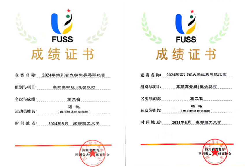 5月23日至5月26日,由四川省教育厅主办,四川省大学生体育协会、成都理工大学承办的2024年四川省大学生乒乓球锦标赛在成都城东体育公园二期乒乓球综合训练馆举行,beat365官网首次组织代表队参赛。经过激烈的角逐,beat365官网学生杨铭、冯悦在高职高专组混双项目比赛中喜获第二名。