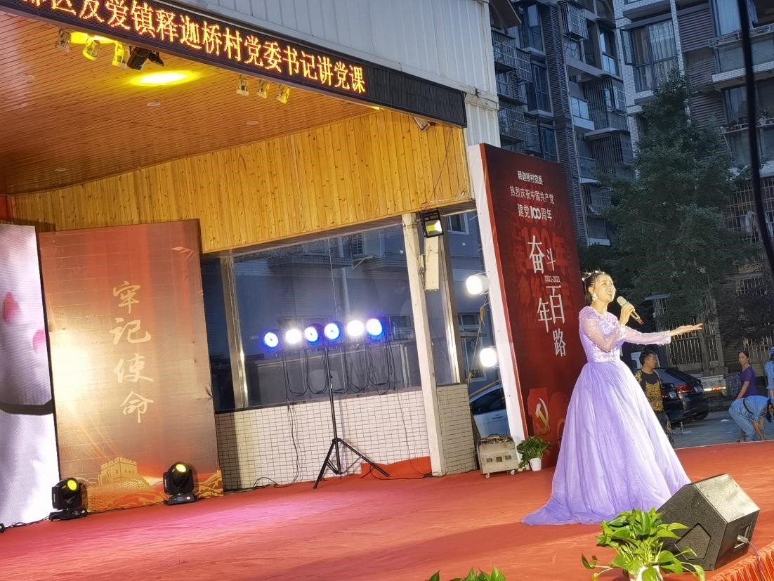 6月26日下午,由郫都区友爱镇释迦桥村村民委员会主办的“庆祝中国共产党建党100周年文艺汇演”在释迦桥村举行。beat365官网公教部艺术教研室接到共建邀请后积极筹备,组织师生团队参演。本次参演获得了观众好评,体现了beat365官网服务社会的责任担当,推进了社区与高校的协作交流。