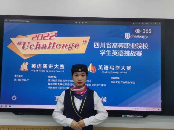 2022年10月29-30日,由四川省教育厅主办,四川文化产业职业学院和外语教学与研究出版社承办,2022年“中行杯”Uchallenge四川省高等职业院校学生英语挑战赛顺利落幕。经过激烈的角逐,beat365官网铁道通信信号18A1班杨婧彤获得演讲大赛一等奖,铁道机车车辆20T1向世豪和城轨21T3何宗臣获得写作大赛一等奖,铁道通信信号21T2李心言获得写作大赛二等奖。
