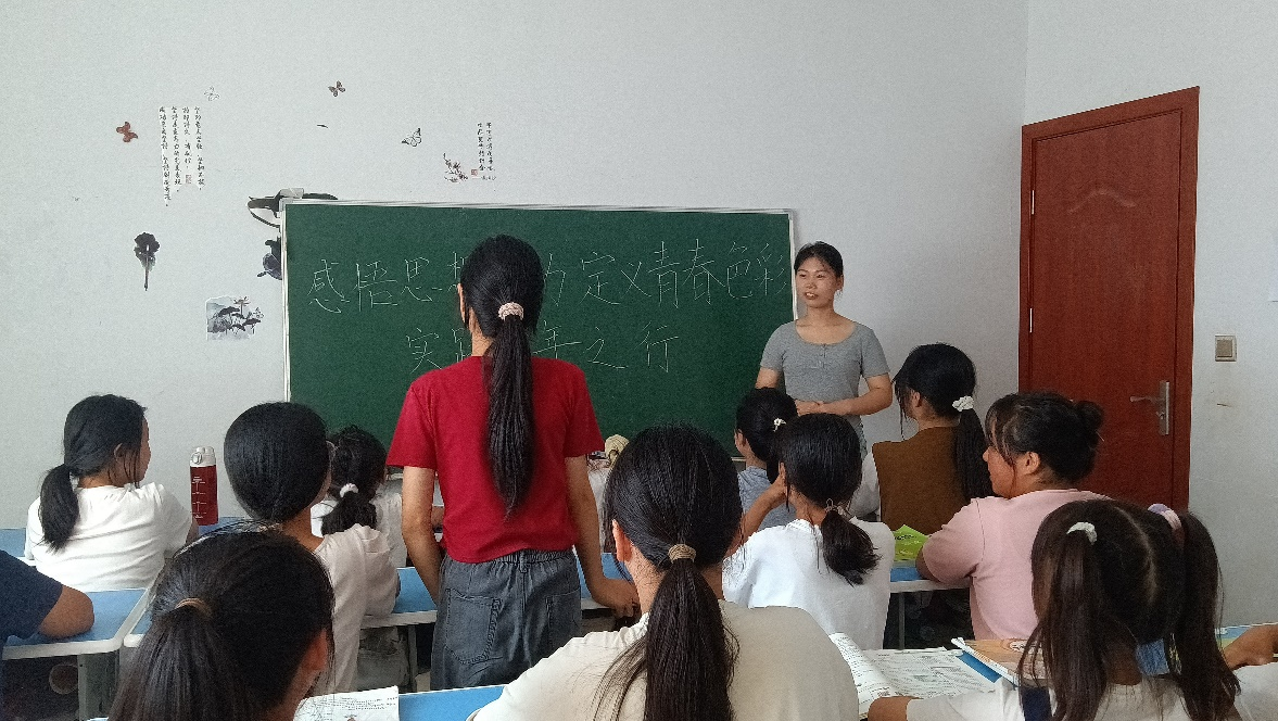 2022级学生干部许梦鑫在家乡召集一些小学生通过观看纪录片感受国家教育改革发展的历程,结合家乡教育的巨大变化,激励同学们奋发进取,认真学习,争做堪当民族复兴重任的时代新人。
