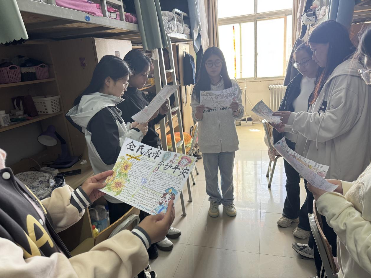 学生党员们分成多个小组,深入学校宿舍,手持精心制作的手抄报,向同学们详细讲解安全知识。在消防安全方面,他们结合近期真实案例,重点介绍宿舍常见火灾隐患,如违规使用大功率电器、私拉乱接电线、堆放易燃物品等,提醒同学们定期检查电器,确保安全用电,防患于未然。在防诈骗知识宣传中,他们讲解了近期高发的电信和网络诈骗案例,揭示刷单返利、虚假贷款等诈骗手段的套路,警示同学们提高警惕,不轻信陌生信息,不随意泄露个人信息,遇到可疑情况及时向辅导员或保卫处反映。