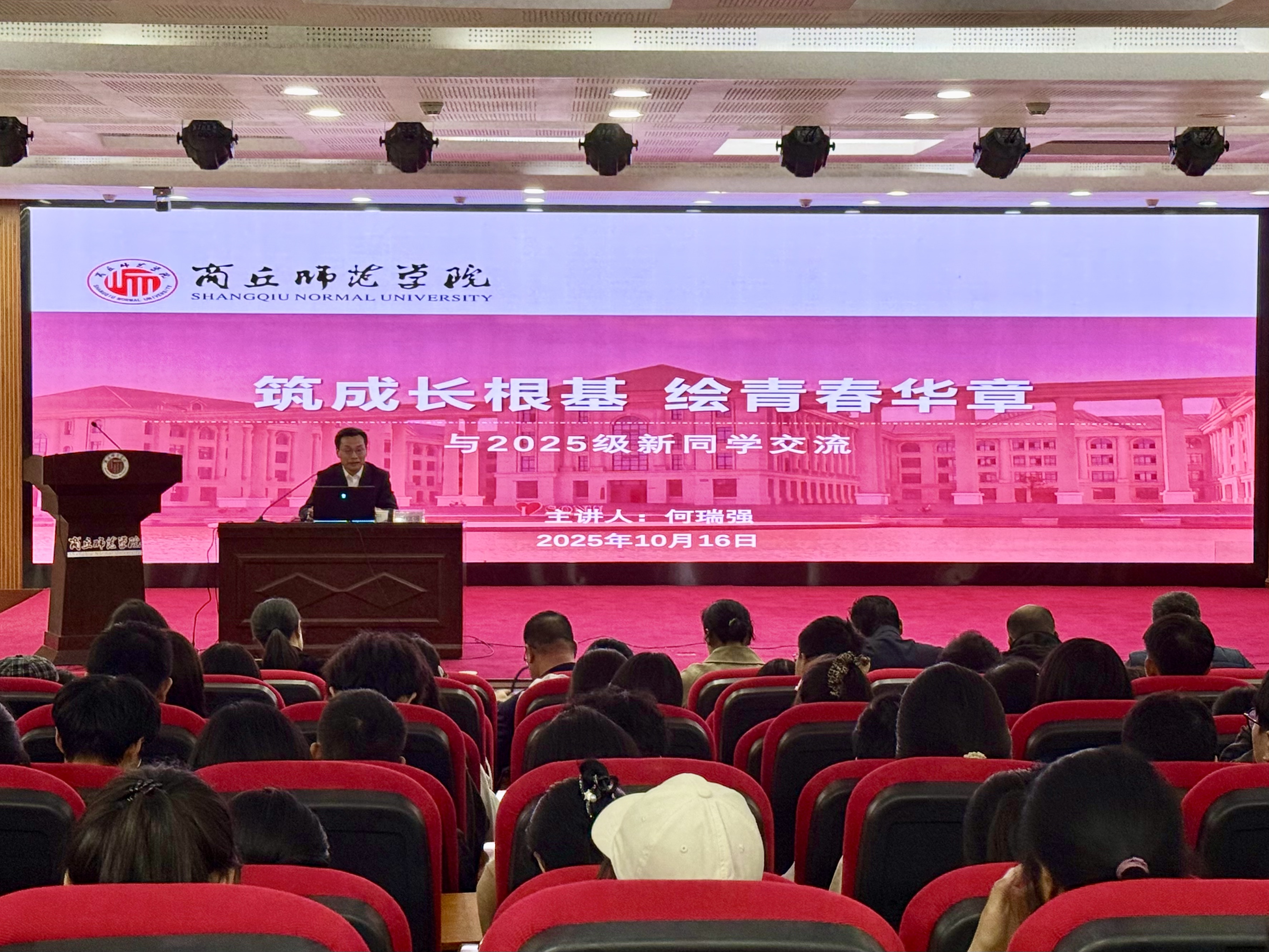 何瑞强以“览校情、辨差异、践行动”为主线,从应天书院的历史文脉切入,介绍了学校的办学理念、师资力量、专业特色、校园文化等,帮助新生建立归属感与自豪感;随后分析大学与高中在学习、生活、心理与发展路径上的差异,提出要以“六个学会”来适应大学生活,以实现独立思考、主动探索与长远发展的三大蜕变;寄语同学们厚植家国情怀,加强理论武装,肩负青年使命,将个人理想融入国家发展,在勤学与实践中提升自我,努力成长为有理想信念、有道德情操、有扎实学识、有仁爱之心的新时代师范生,让青春在学习、创新、奉献中绽放光彩。