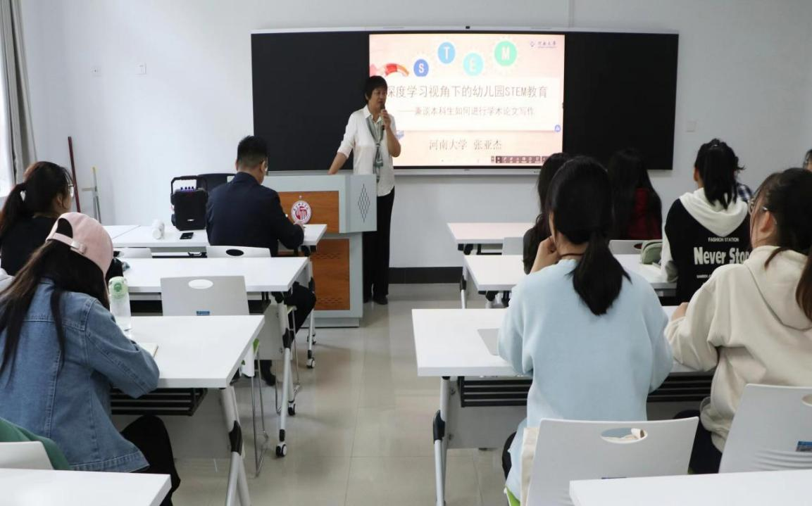 4月17日,河南大学教育学院学前教育系主任张亚杰老师应邀为BB贝博艾弗森官方网站学前教育专业师生做题为“深度学习视角下的幼儿园STEM教育——兼谈本科生如何进行学术论文写作”的学术报告。本次报告由BB贝博艾弗森官方网站副院长李战营主持,学前教育专业学生和部分教师参加。