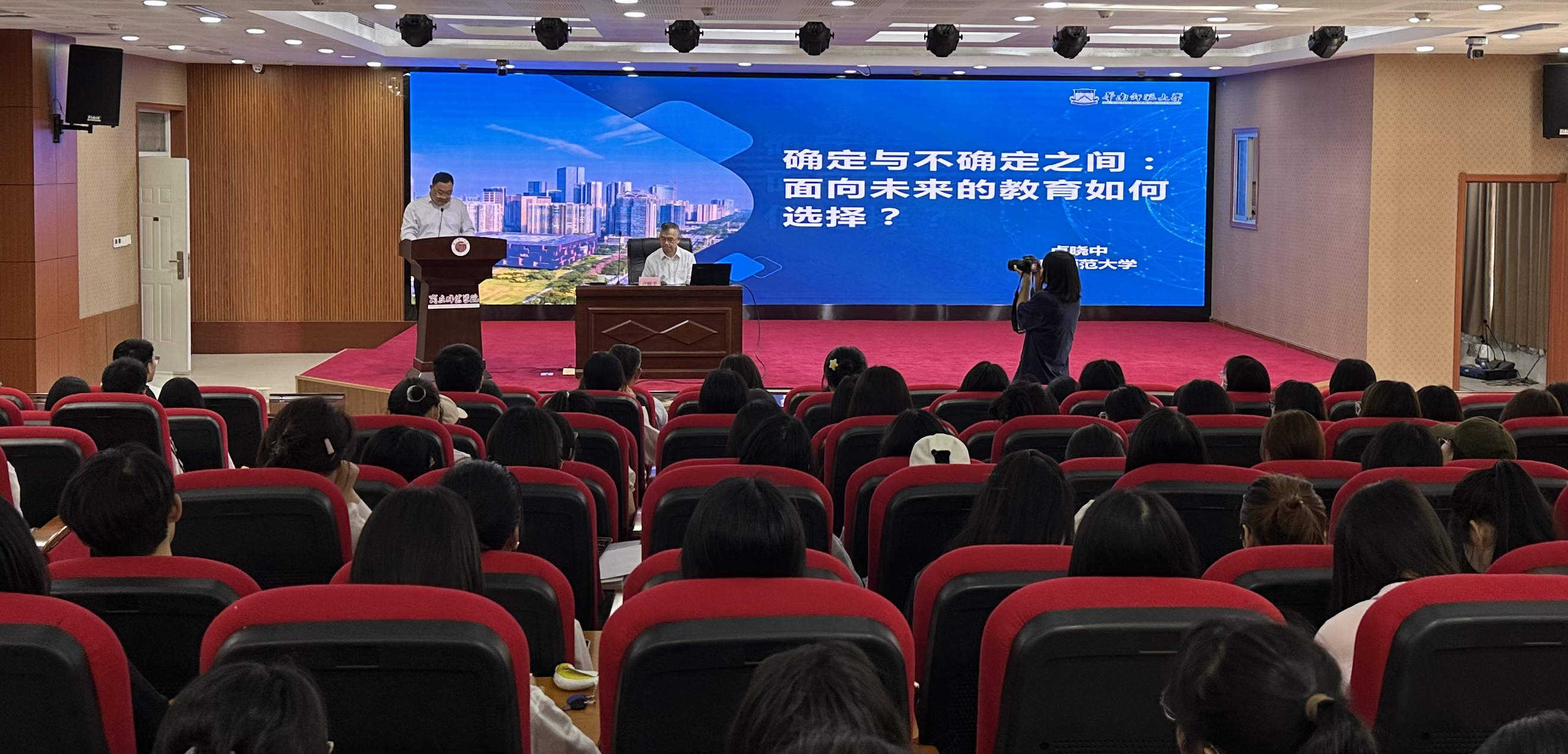 5月9日,受BB贝博艾弗森官方网站邀请,华南师范大学卢晓中教授在三商楼145报告厅做了题为“确定与不确定之间:面向未来的教育如何选择?”的专题报告。报告会由BB贝博艾弗森官方网站院长孙旭主持,部分教师及百余名学生参加了报告会。