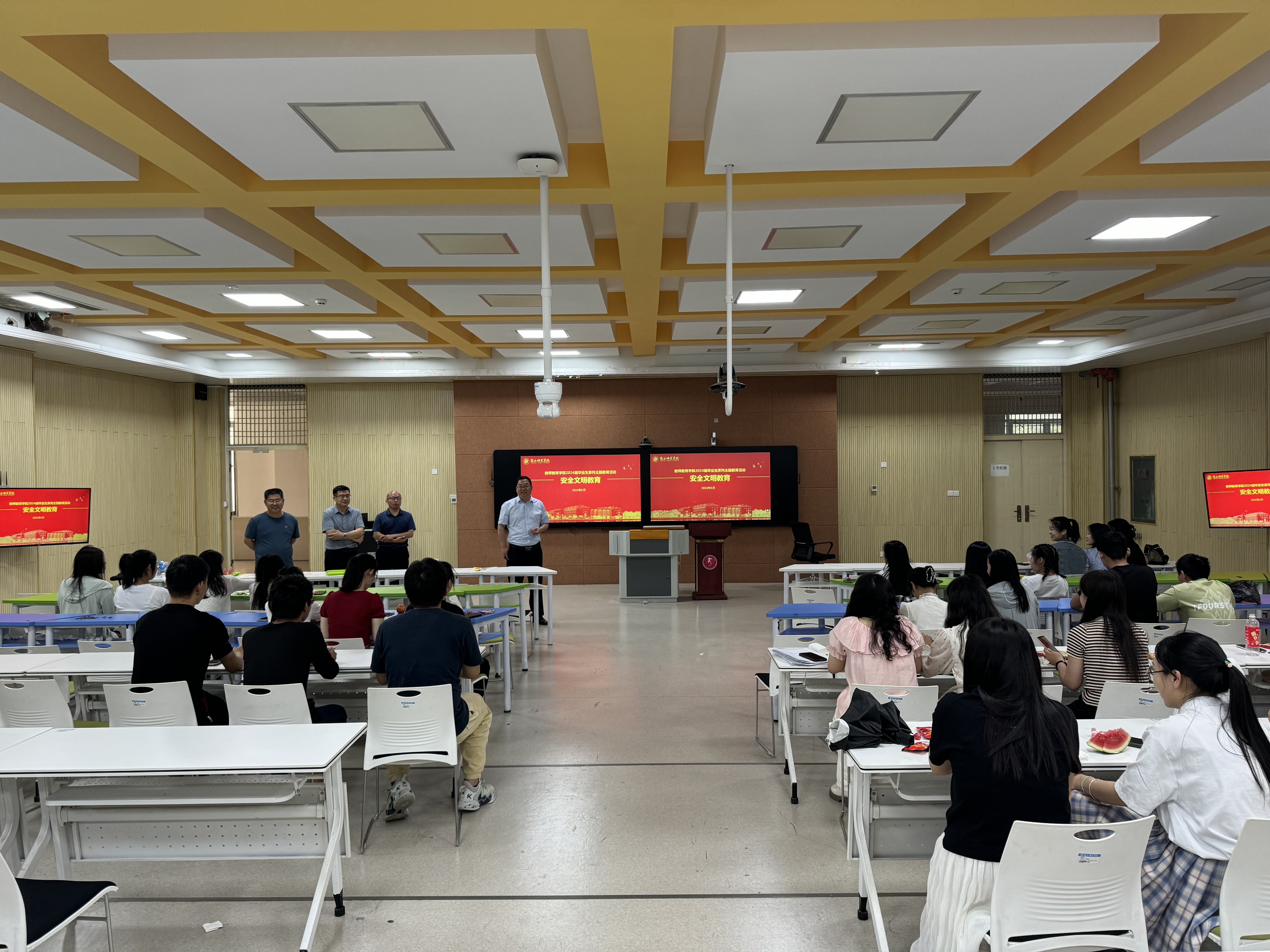 孙旭对毕业生四年学习生活进行回顾和总结,肯定同学们四年以来的成长与收获,希望同学们一直保持心中的热忱与豁达,坚守内心的追求与美好,母校和学院是大家强大的后盾,欢迎大家常回来看看。邱友谊以“爱国荣校 追梦启航”为题,鼓励毕业生加强爱校荣校情怀,共同营造文明和谐、平安有序的毕业离校良好氛围。