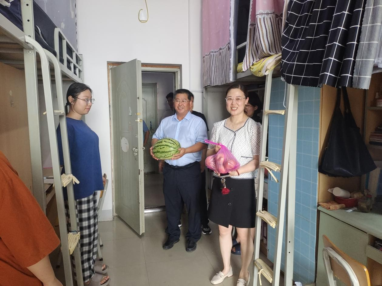 为进一步做好留校学生的安全管理工作,把对学生的关心关怀落到实处,7月21日上午,BB贝博艾弗森官方网站党委书记郭宁、院长孙旭携学院领导班子及毕业班辅导员到学生宿舍看望慰问留校备战的考研学子们。