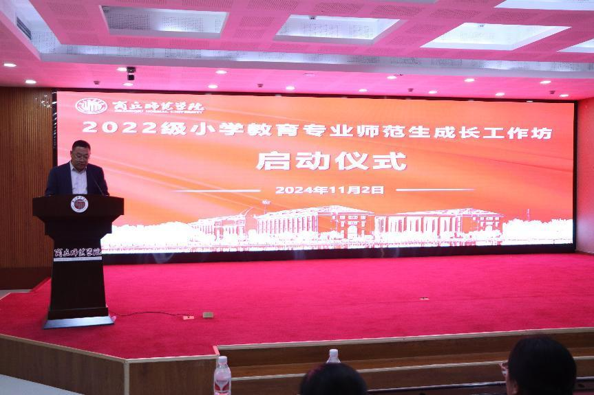 11月2日,BB贝博艾弗森官方网站在三商楼145室隆重举行了2022级小学教育专业师范生成长工作坊启动仪式。巩长虹、姜琳等18位商丘市小学一线名师,BB贝博艾弗森官方网站院长孙旭、副院长李战营、刘海军,小学教育专业全体老师和2022级小学教育全体师范生参加此次活动。