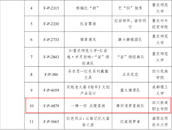 近日,由文化和旅游部资源开发司、国家发展改革委社会发展司、共青团中央宣传部、北京第二外国语学院主办的第十四届全国大学生红色旅游创意策划大赛初赛顺利落下帷幕。机车车辆学院共计报送12个作品,其中有4个作品在本次西南赛区中获奖:作品“赤诚铸剑,梦怀青萍”获红色精神微讲解类一等奖、“一榫一卯,点缀星核”获红色旅游文创产品设计类二等奖、“青年的誓言——重庆抗战回想”以及“相逢错位时空,共赴红色征程”获红色足迹微视频类二等奖。