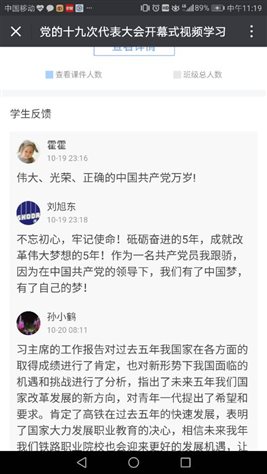中国共产党第十九次全国代表大会正有序进行,机车车辆系党总支利用“雨课堂”的方式持续关注十九大会议进程,学习十九大精神。
