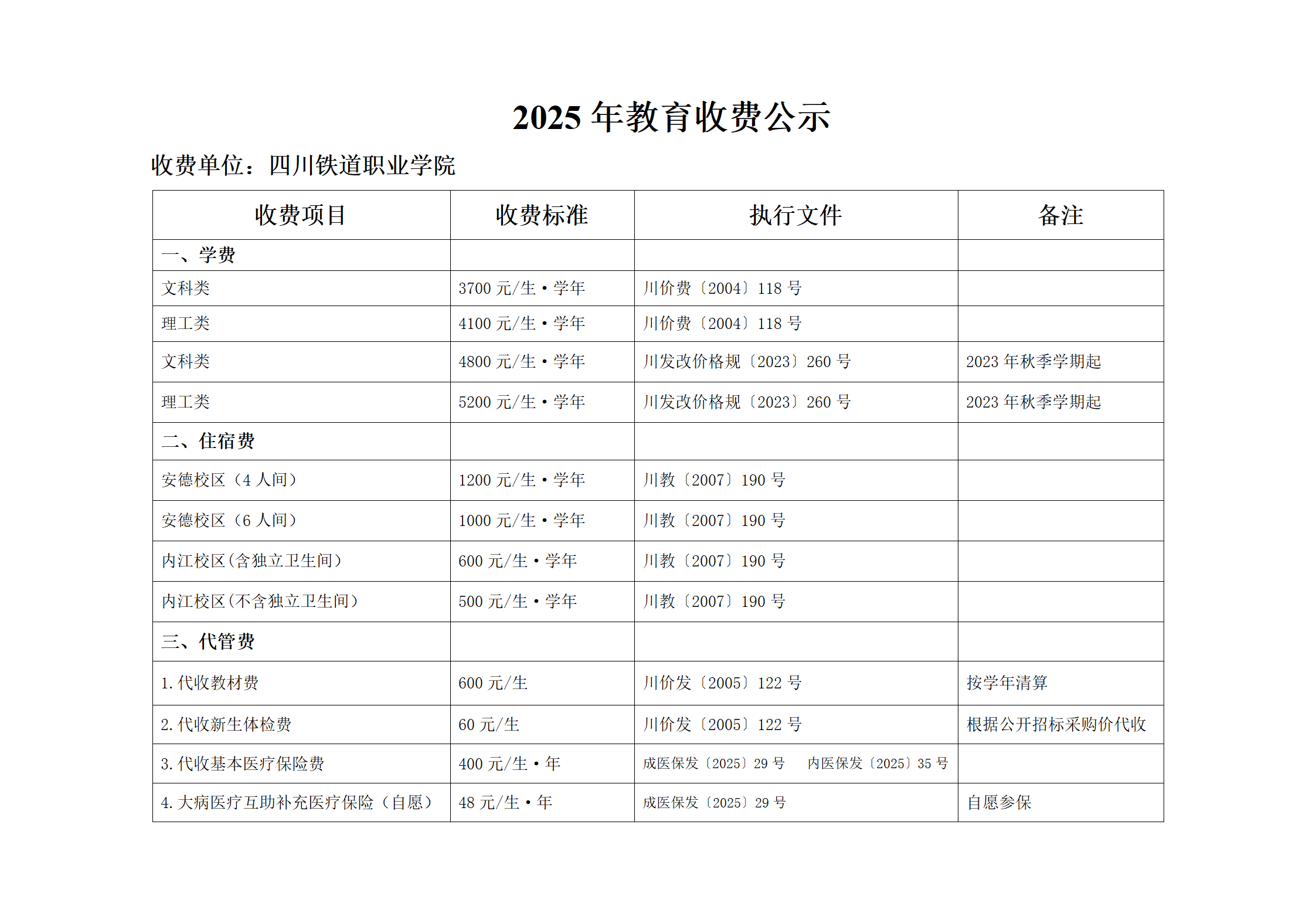 2025年教育收费公示