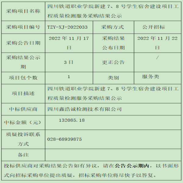 beat365英国官方网站新建7、8号学生宿舍建设项目工程质量检测服务采购结果公示