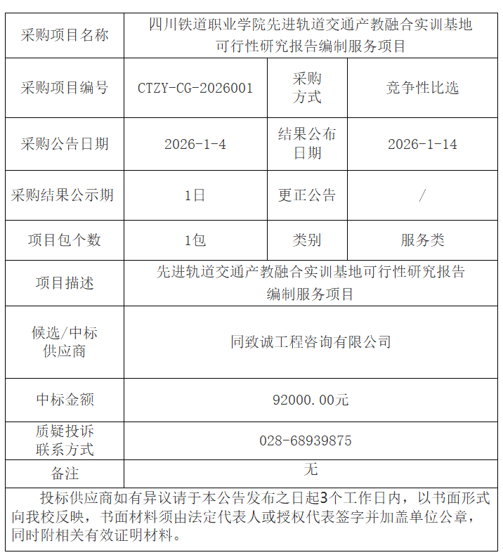 beat365英国官方网站先进轨道交通产教融合实训基地可行性研究报告编制服务项目结果公告
