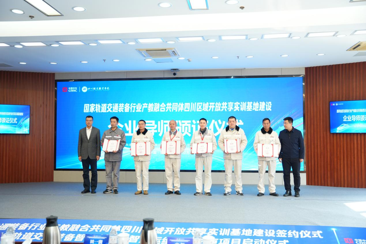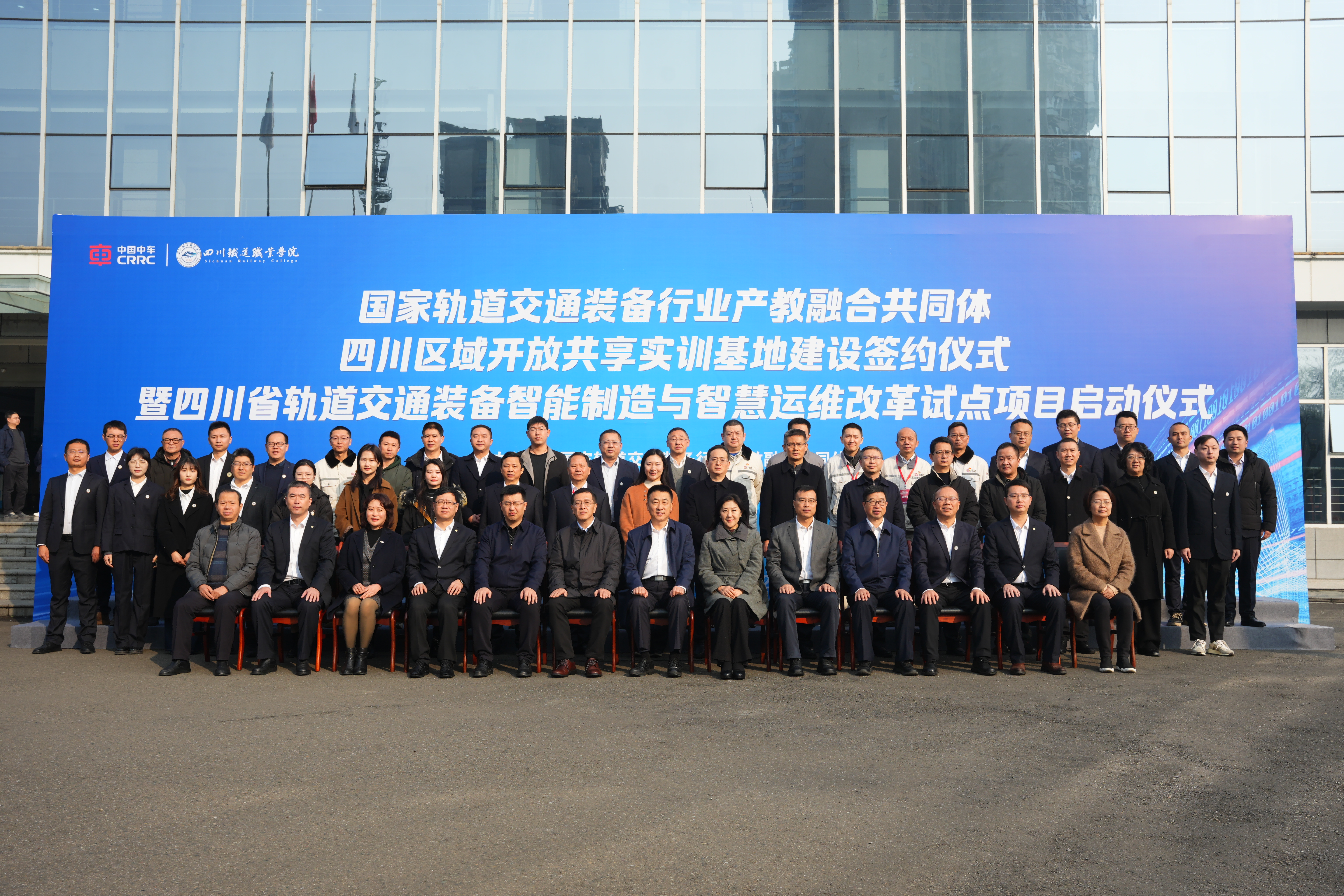 为深入贯彻落实习近平总书记对教育工作和产教融合工作作出的重要指示精神,努力打造具有轨道交通装备行业产教融合共同体标杆示范,为轨道交通装备行业加快发展新质生产力夯实人才根基,12 月 26 日,国家轨道交通装备行业产教融合共同体四川区域开放共享实训基地建设签约仪式暨四川省轨道交通装备智能制造与智慧运维产教融合改革试点项目启动仪式在眉山举行。中国中车集团有限公司、四川省教育厅、眉山市人民政府以及国家轨道交通装备行业产教融合共同体主要成员西南交通大学、beat365英国官方网站等单位领导出席活动。本次活动旨在共同探讨轨道交通装备行业发展新路径,推动职业教育与轨道交通装备行业深度融合,促进我国轨道交通装备行业高质量发展。