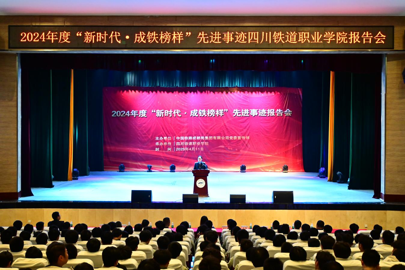 4月11日,为深入学习贯彻党的二十大精神,弘扬新时代铁路工匠精神,激励广大青年学子扎根铁路、建功岗位,beat365官网特邀中国铁路成都局集团有限公司2024年度“新时代·成铁榜样”宣讲团来校开展“奋进改革新征程、建功铁路现代化”主题宣讲活动。10名来自成都局集团不同岗位的先进榜样走进校园,为1400余名即将踏上铁路工作岗位的师生带来了一场震撼心灵的“精神盛宴”。