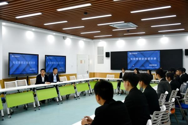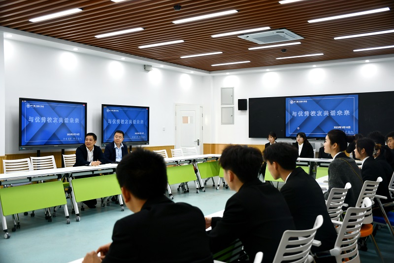 分享结束后,两位校友与在校生开展了现场交流。校友们针对同学们的问题进行了具体回应。他们结合自己的求职经验在择业、求职方面对在同学们进行了全面、细致的指导。他们强调初入职场要沉下心来提升自己的专业素养,重视实习、实践,在岗位体验中提升对岗位的认知和自身综合素质。