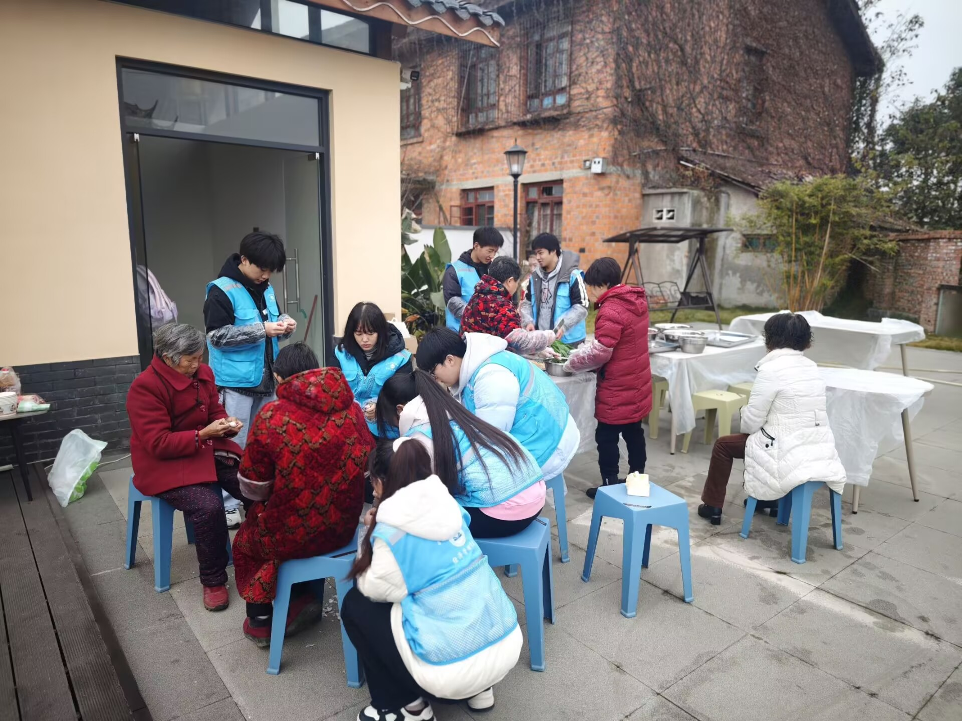 活动当日,志愿者们早早来到横山村。在简单的准备工作之后,大家开始着手与村民一起包饺子。他们有的熟练地揉面、擀皮,有的负责精心调配馅料,还有的专注于包饺子。老人们给同学们传授包饺子的小窍门,讲述冬至传统习俗。志愿者们则分享着校园生活趣事。不一会儿,案板上就摆满了虽形态各异却饱满诱人的饺子。欢声笑语此起彼伏,营造出一片欢乐吉祥的节日氛围。