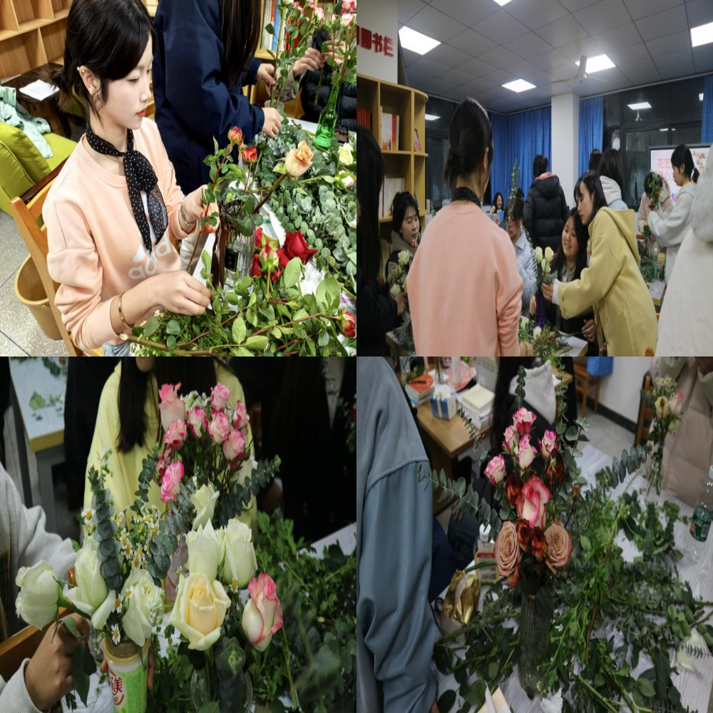 在植树节来临之际,为践行绿色发展理念,丰富校园文化生活,经济管理学院3月12日晚在“一站式”社区5113室举办了"花艺灵感·匠心之美"主题插花活动。活动吸引了来自学校各二级学院同学的踊跃报名,最终通过随机抽选的20名同学来到现场参加活动。学院党总支书记文容、辅导员胡月与同学们齐聚一堂,现场花香四溢,创意纷呈。