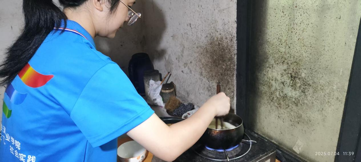 团队针对留守老人和儿童开展专项服务。志愿者们为九旬老人包制易食的饺子、熬制软糯的粥,用细微关怀温暖老人心田。在儿童暑假班中,他们通过心理课程和动画引导孩子们认识情绪,并借助互动游戏教授垃圾分类知识,寓教于乐,播撒成长与环保的种子。
