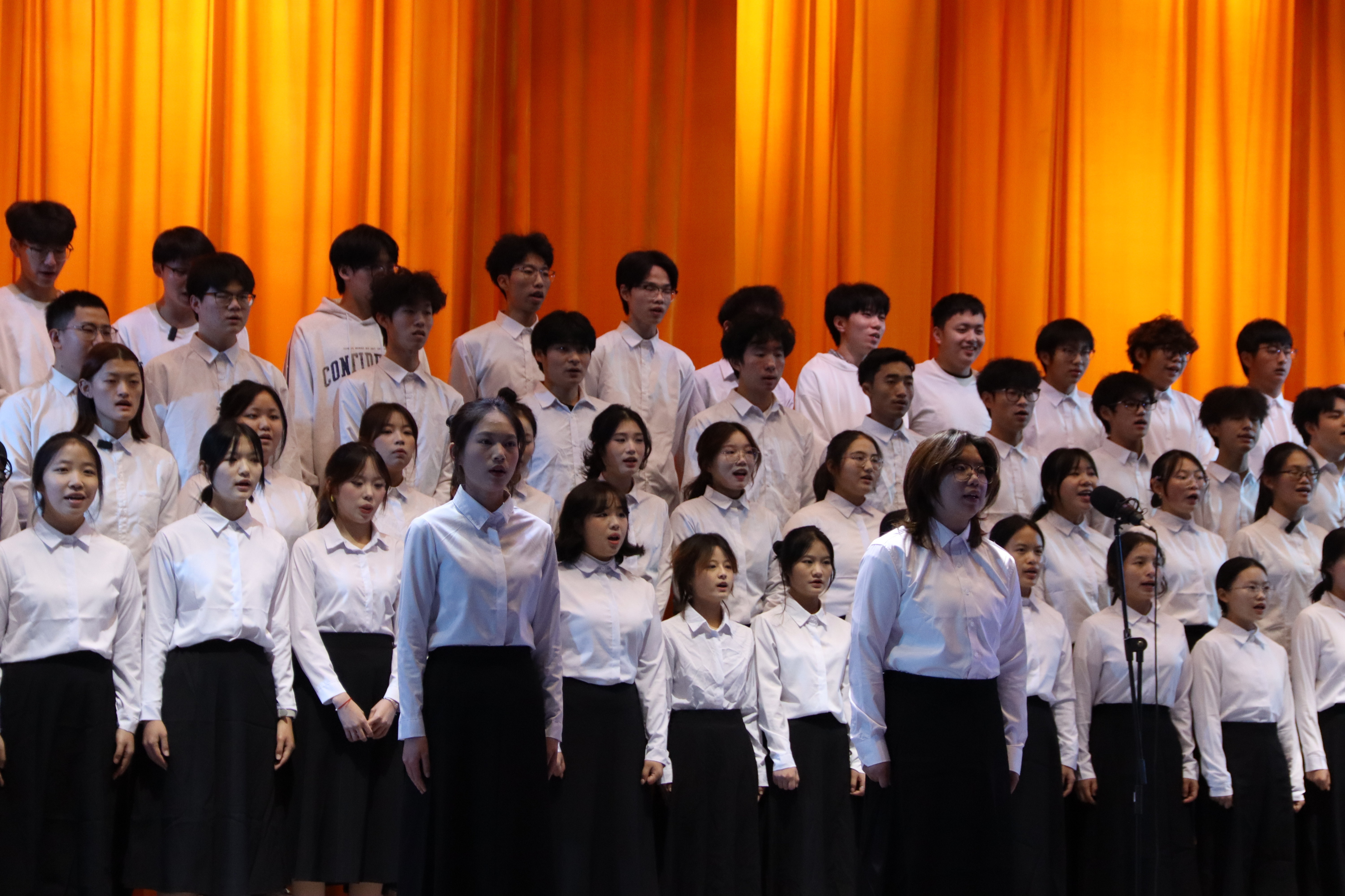 为纪念“一二·九”学生爱国主义运动九十周年,传承红色基因,凝聚青春力量,11月18日晚,经济管理学院在大礼堂隆重举行纪念“一二·九”运动合唱比赛,2024级、2025级各班级单独或组队参加。校团委郝曦,经济管理学院教学科熊杨、田敏以及全体辅导员参加评分工作。