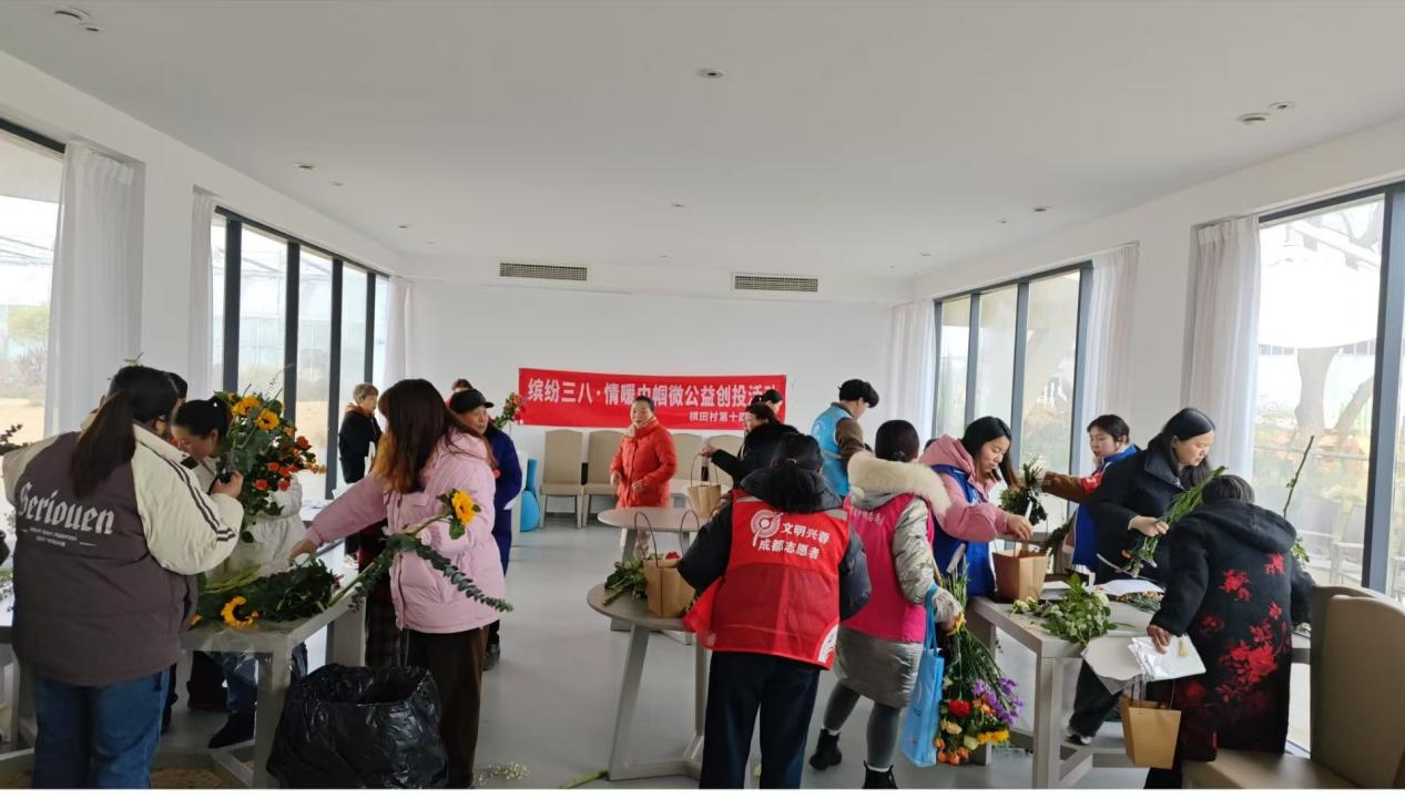 随着春意渐浓,“三八” 国际劳动妇女节如期而至。经济管理学院青协分会前往棋田村金品花卉种苗有限责任公司活动室,成功举办了 “缤纷三八・情暖巾帼”—— 微公益创投活动,吸引了棋田村 60 余名群众热情参与。