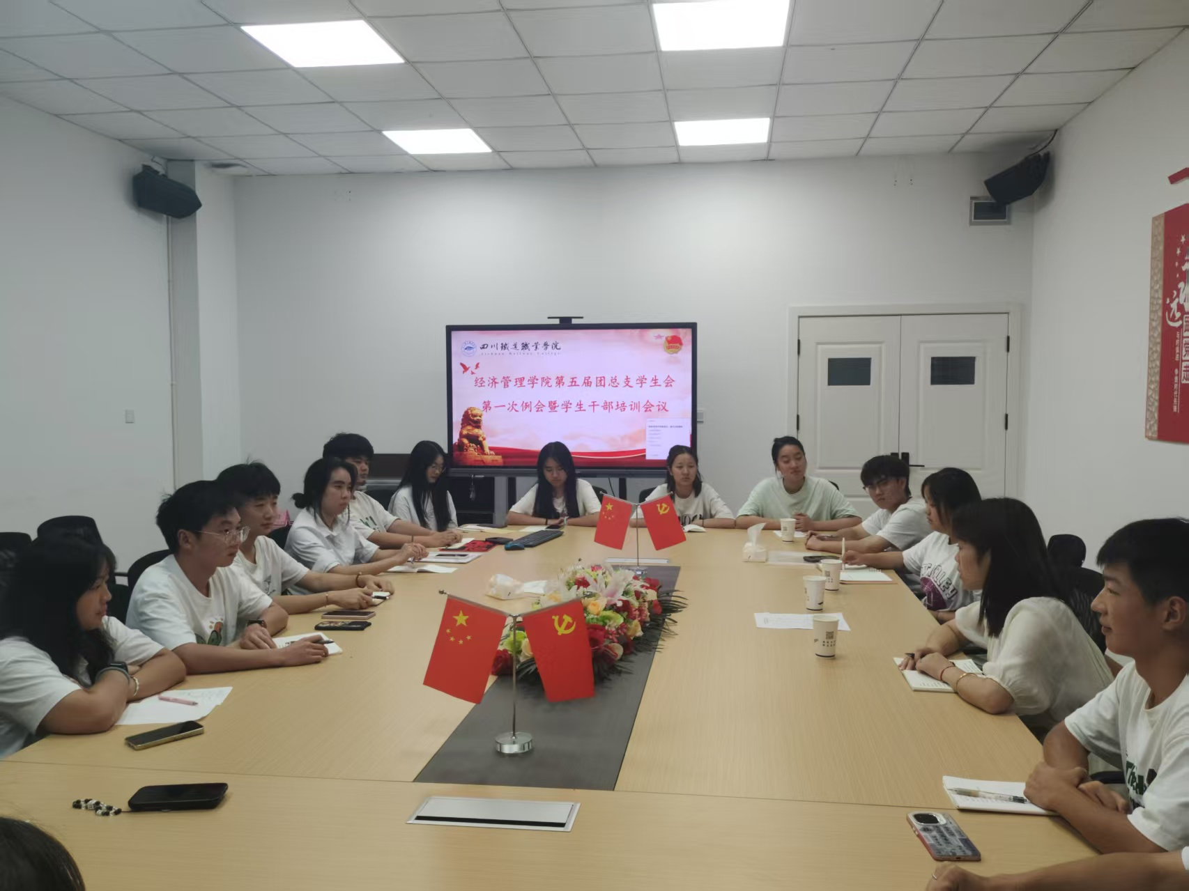 扬帆正当时,聚力启新程。7月8日晚,经济管理学院第五届团总支学生会首次全体例会暨干部培训会在2304-1会议室圆满举行。学院学生科科长、学生党支部书记胡月,团总支书记李丹与全体19名新一届学生会成员齐聚一堂,共话使命担当,擘画未来蓝图。