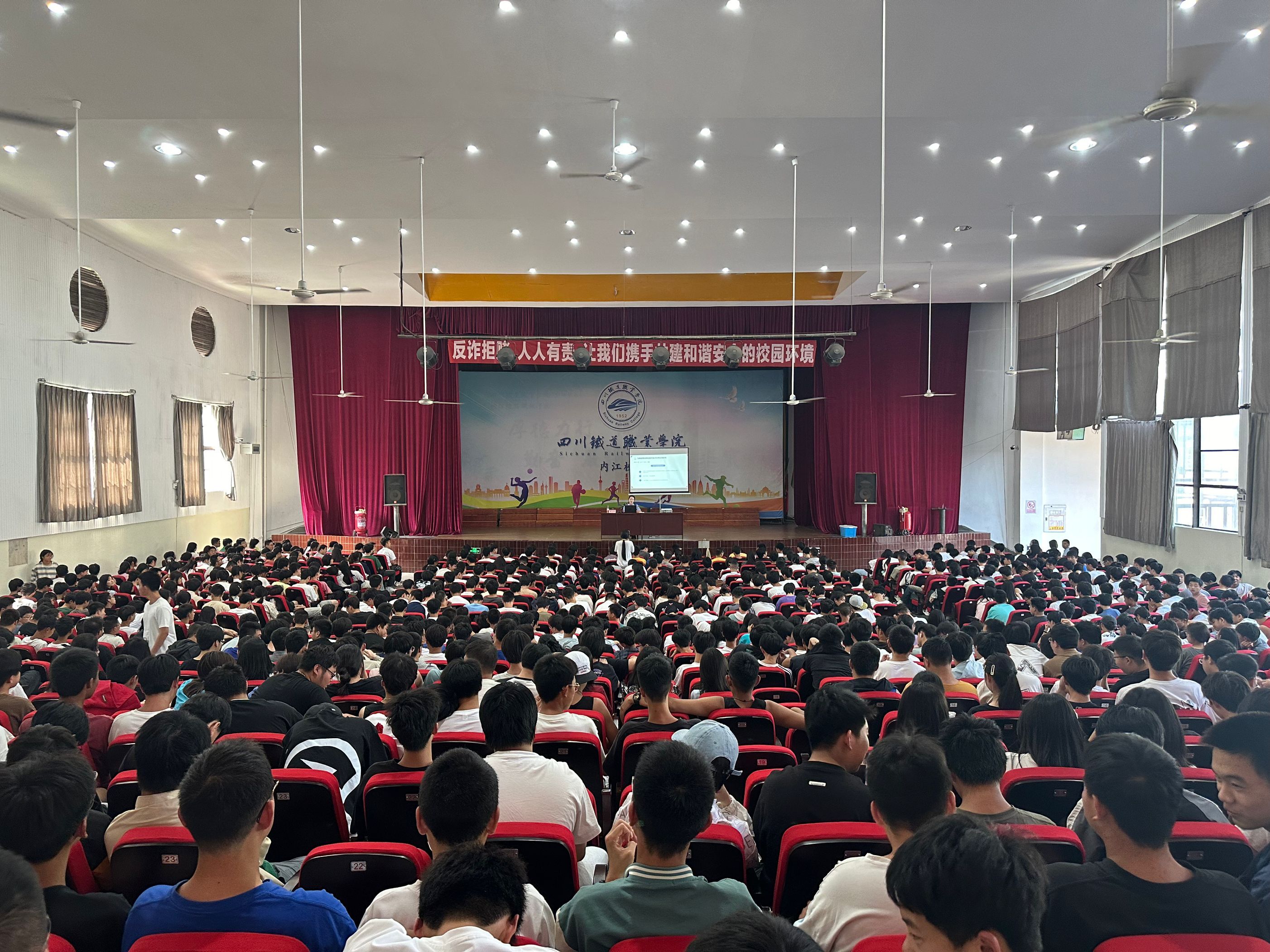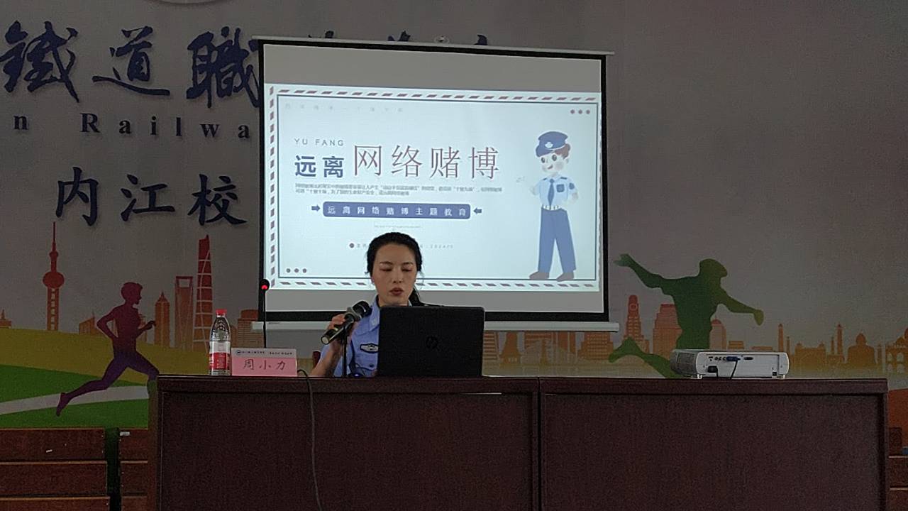 为进一步加强师生防诈拒赌意识,提高大家防范、识别网络电信诈骗、拒绝赌博的能力,维护人身财产安全,预防违法犯罪发生,5月13日,内江校区邀请经开区交通派出所周小力警官在大礼堂开展了“反诈拒赌”专题讲座。