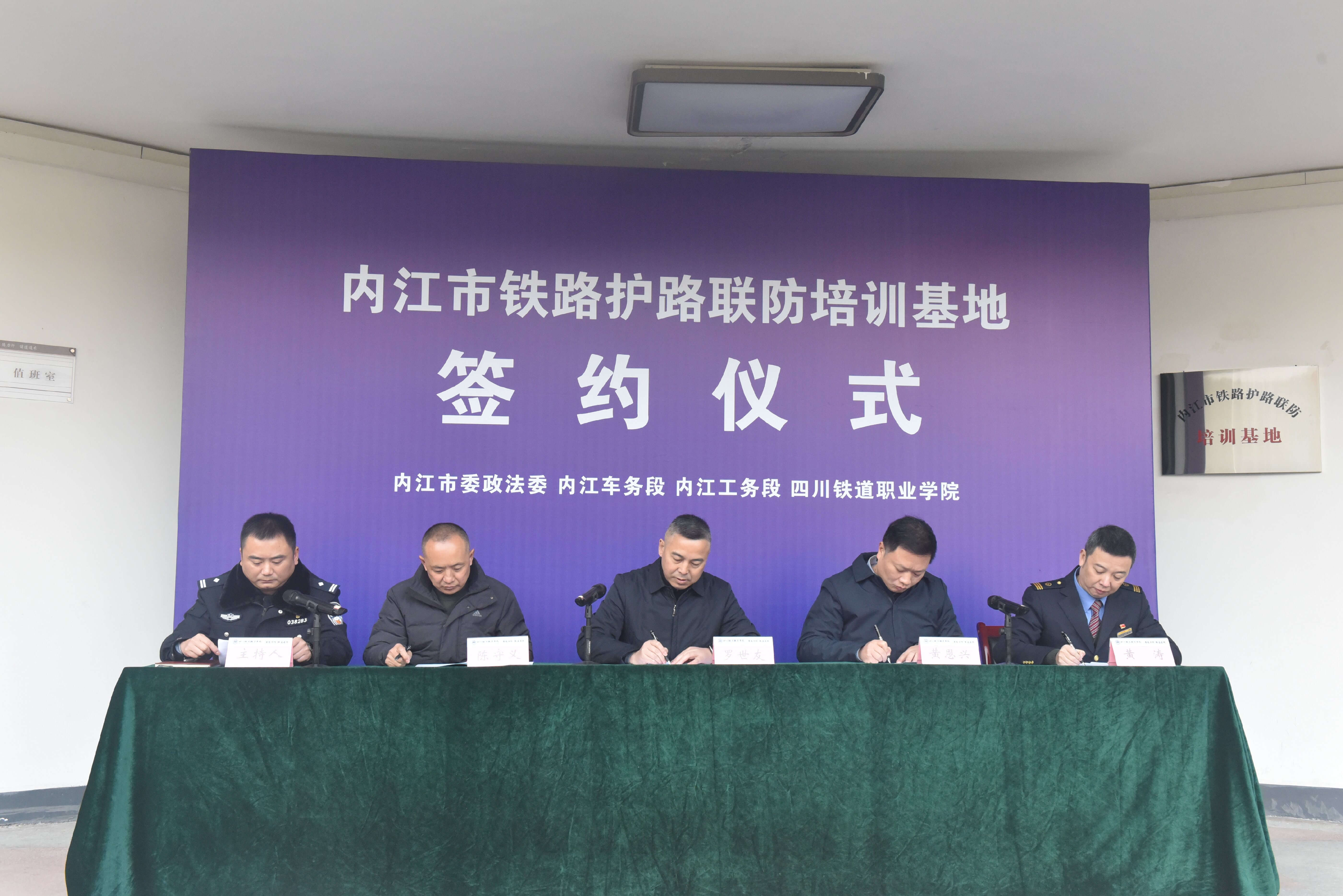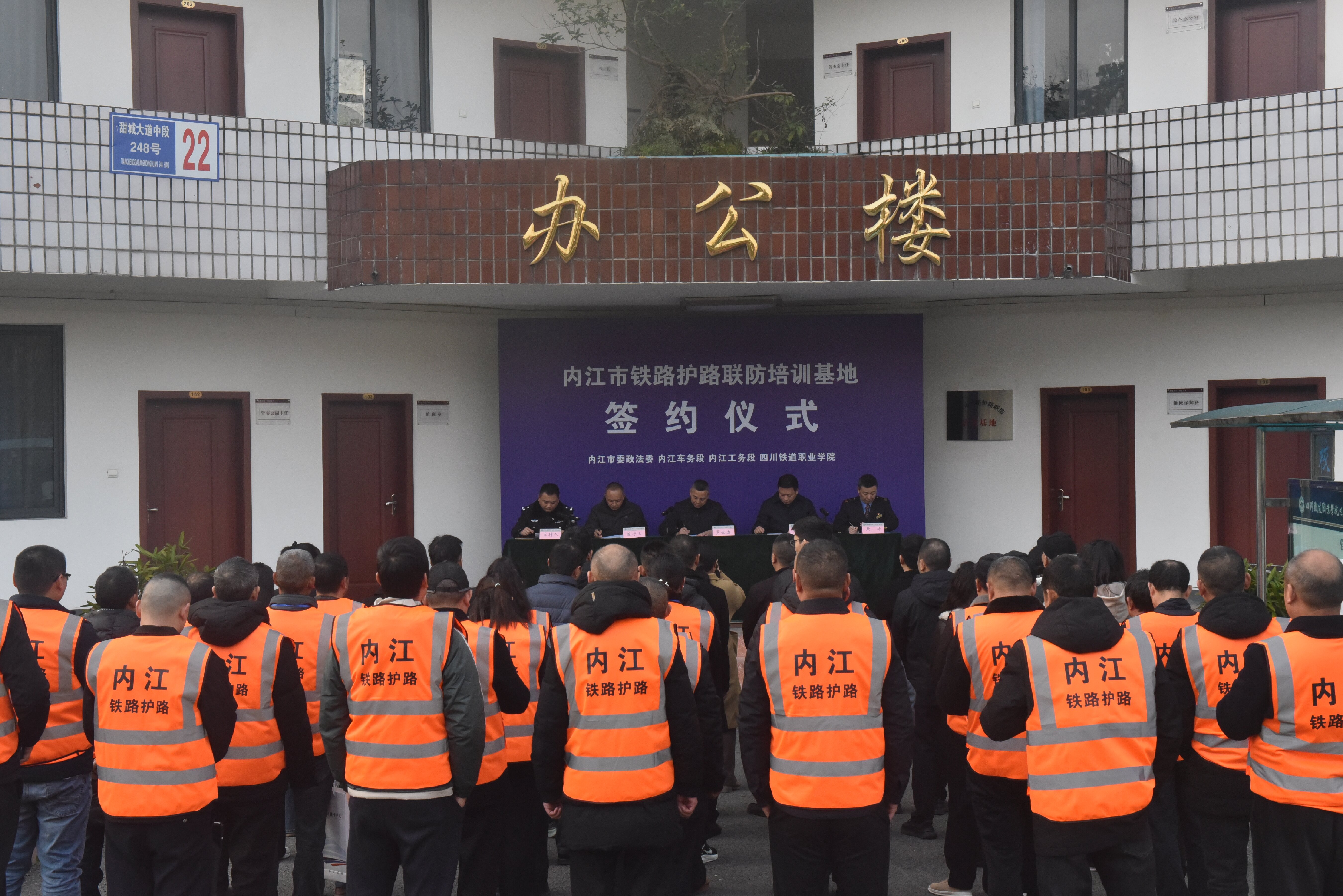 市铁护办主任,内江市教育体育局、交通运输局、内江车务段、内江工务段、成都高铁工务段、宜宾工电段、beat365英国官方网站相关负责同志,各县(市、区)铁护组组长、铁护办主任,参培护路队员等参加签约仪式。