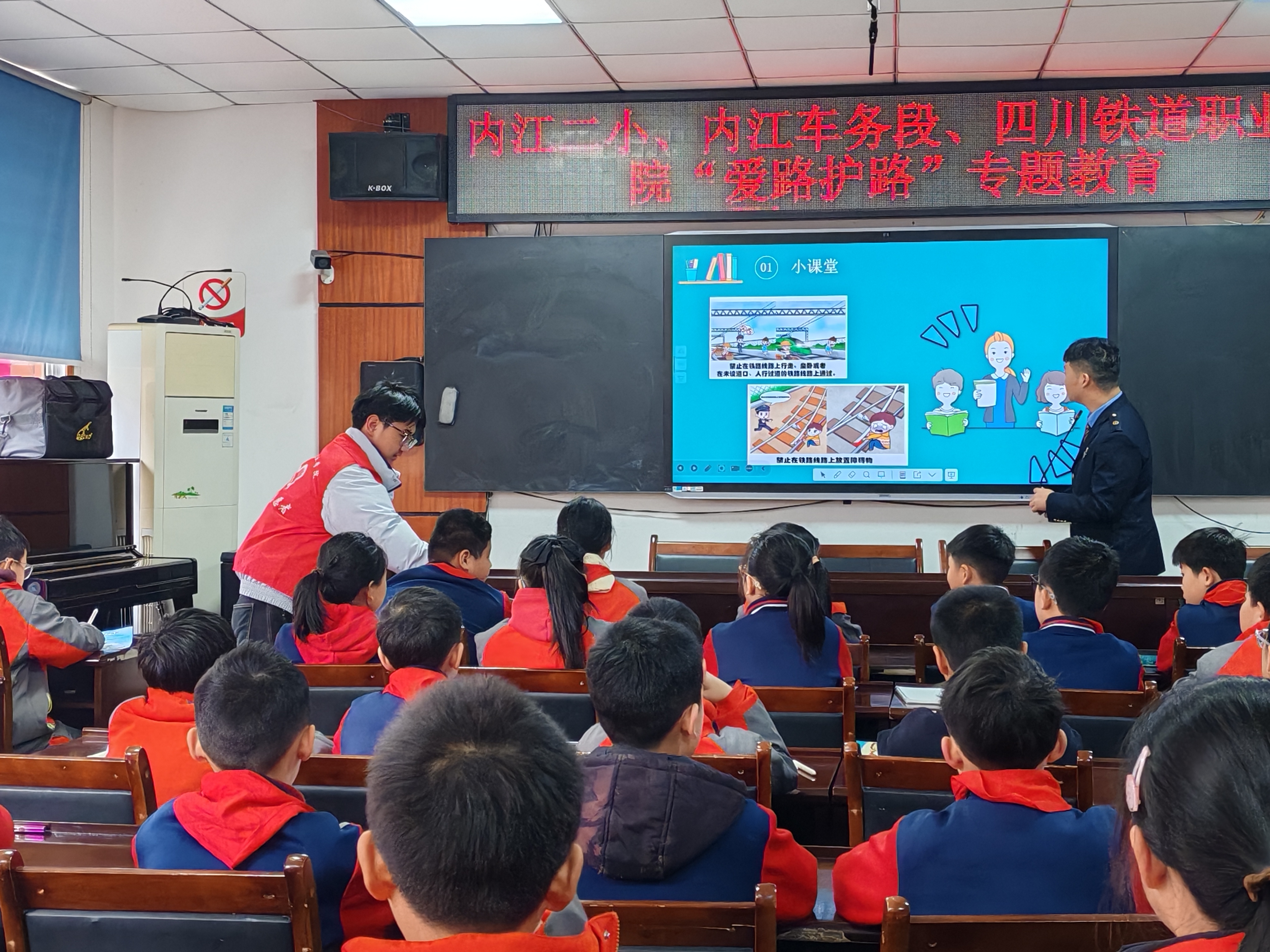 3月18日,beat365官网携手内江车务段,走进内江市第二小学开展铁路安全教育专题活动。活动以“爱路护路”为核心,通过知识宣讲、资料发放、互动问答等形式,为孩子们带来了一堂生动实用的安全防护课。