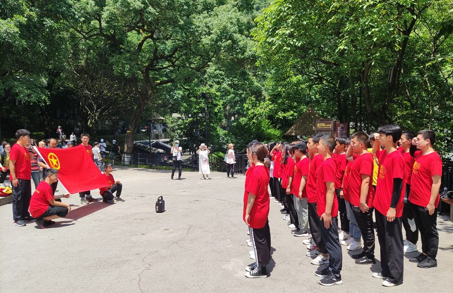 在讲解员的带领下,同学们怀着对革命先列无比崇敬的心情在一张张记录历史瞬间的照片、一座座革命志士雕像、一间间阴森的囚牢、一件件冰冷血腥的刑具前久久伫立,感受革命斗争年代志士们在铁窗里威武不屈、英勇无畏、乐观向上的崇高形象和伟大精神,以及我党所经历的艰苦卓绝、血雨腥风的奋斗历史 。那一组组陌生的名单,一张张发黄的照片,便是一堂最为生动的团课,不需要什么语言,坚强的先烈、优秀的革命战士对共产主义的崇高追求所做出的行动便是最好的语言。上百名革命烈士用满腔热血和不畏牺牲的品质把红岩精神诠释得淋漓尽致!学习完革命烈士的光辉事迹后,全体同学在渣滓洞前,整齐列队,面朝鲜红的团旗,重温入团誓词,铿锵有力的宣读声,昭示着自己的初心信仰和庄严承诺,将豪迈誓言转化为努力学习、砥砺奋进的不竭动力。