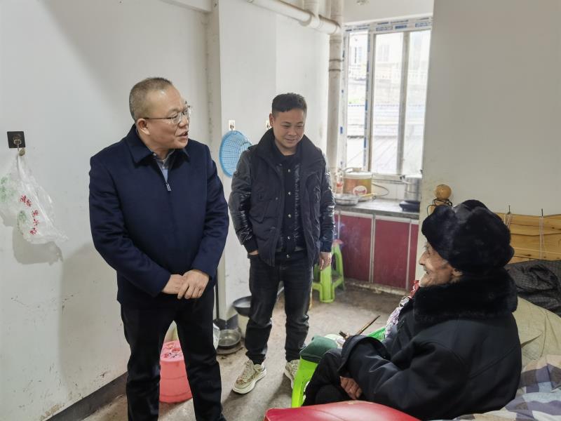 下午,贺兆轩一行来到学校定点帮扶地马边县民主镇玛瑙村,看望慰问学校下派驻村干部李本强、林洪生,详细了解他们在村的工作、生活情况和存在的困难,关心他们的身体健康。随后,深入农户家中开展“走基层、送温暖”活动。在群众家中,贺兆轩与他们亲切交谈,深入了解他们的生产生活条件和教育医疗条件,并向玛瑙村老党员代表、困难群众送去冬被、暖手宝、春联等暖冬慰问品,祝福他们新年快乐,生活幸福。