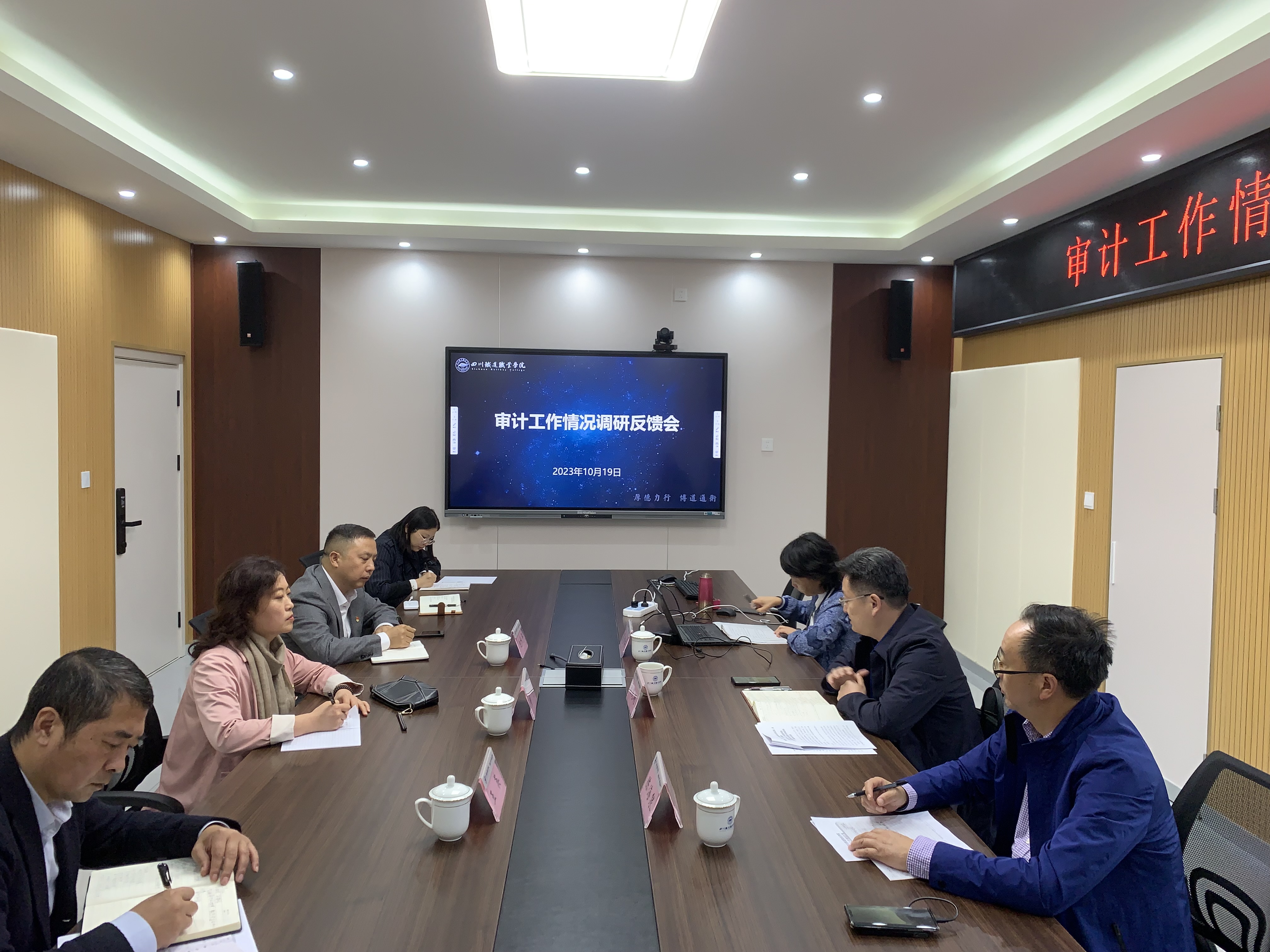 现场调研工作结束后,召开了调研工作反馈会。首先由审计厅内部审计监督指导处一级调研员吴雪梅反馈此次检查工作情况的亮点,一是校领导重视审计工作,党委会和院长办公均对审计相关议题分别进行了审议;二是对中介机构服务质量有考核,设置了《审计业务外包服务商考核表》对中介机构的服务质量进行考核评价;三是审计整改结果清晰完整,审计处对审计整改情况设立了台账,清晰呈现了整改要求、整改进度、后续整改情况以及整改是否最终完成等要素。