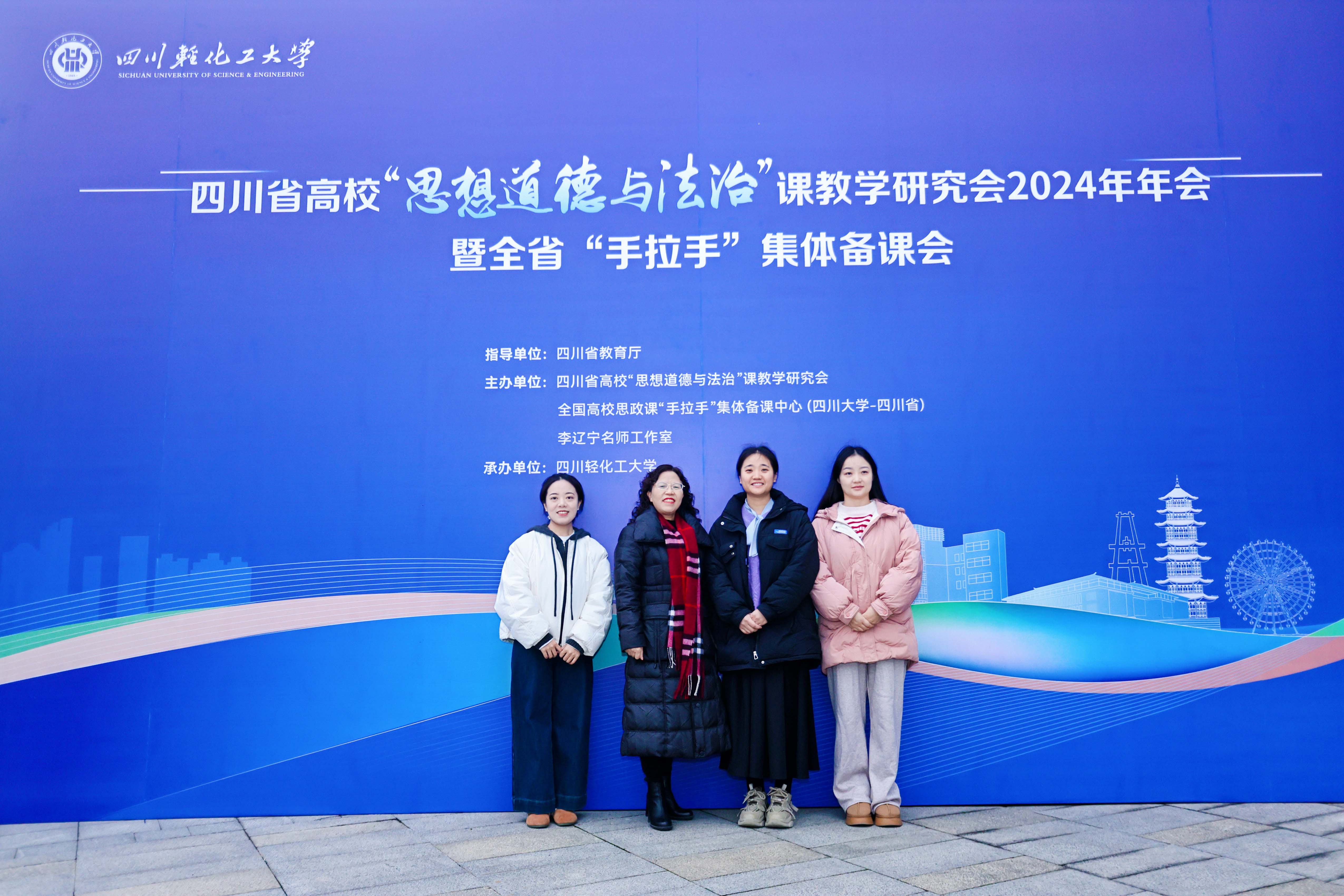 为深入学习贯彻习近平总书记对学校思政课建设作出重要指示精神,进一步提升四川省思想政治理论课建设水平,2024年12月12日至12月14日,四川省高校“思想道德与法治”课教学研究会2024年年会暨全省“手拉手”集体备课会在自贡召开,本次年会由四川省高校“思想道德与法治”课教学研究会主办,由四川轻化工大学马克思主义学院承办,来自全省80余所高校的200余名专家和教师参加了本次年会。在beat365官网马克思主义学院院长朱红带领下,思政课教师马丹、王婷婷、羊静参会。