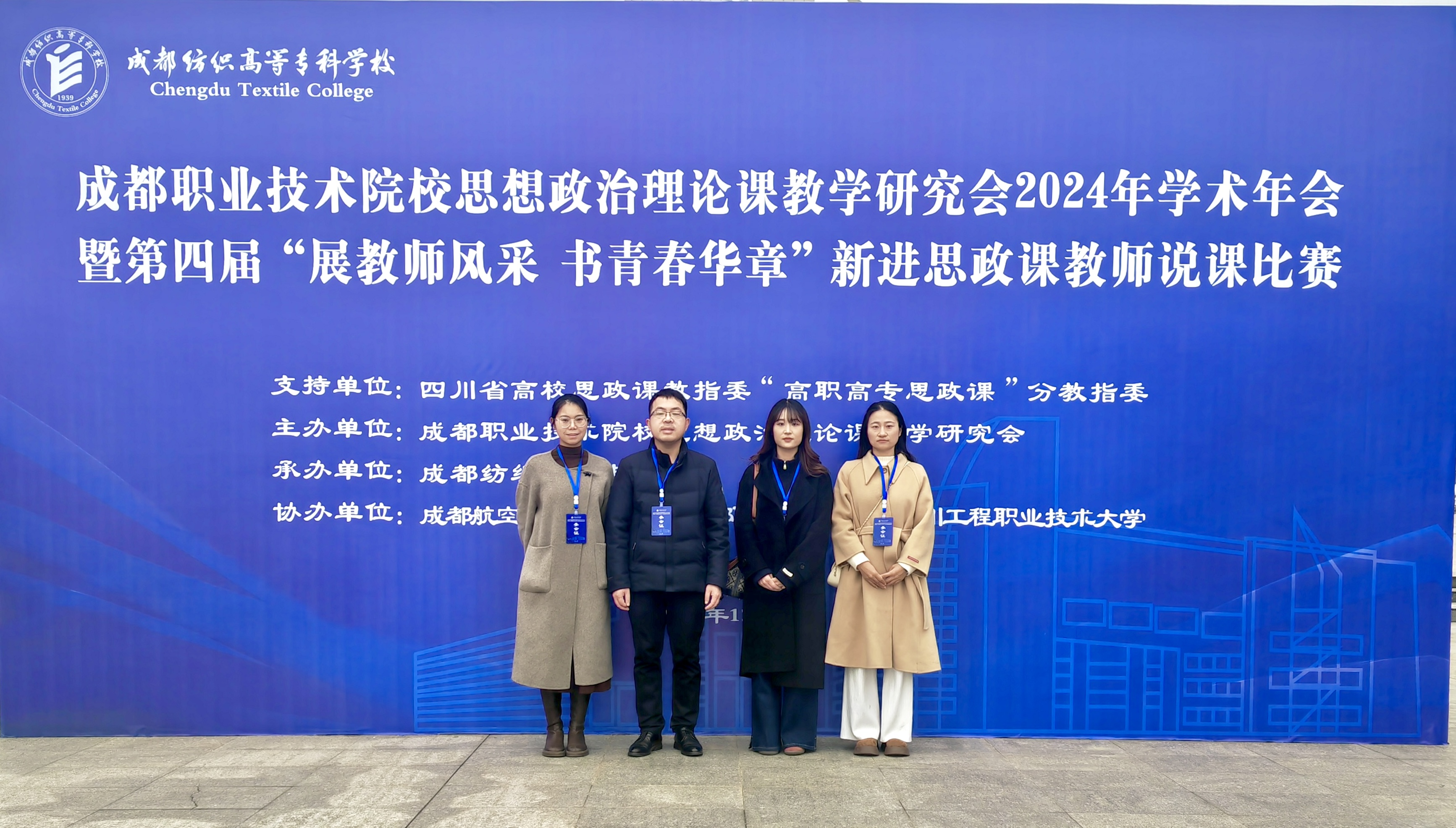 为深入学习贯彻党的二十届三中全会和全国教育大会精神,推进党的二十届三中全会和全国教育大会精神融入思想政治理论课教育教学和习近平新时代中国特色社会主义思想“进教材、进课堂、进头脑”。2024年12月20日至12月21日,成都职业技术院校思想政治理论课教学研究会2024年学术年会暨第四届“展教师风采 书青春华章”新进思政课教师说课比赛在成都召开,本次年会由成都职业技术院校思想政治理论课教学研究会主办,成都纺织高等专科学校承办,成都航空职业技术学院、成都职业技术学院、四川工程职业技术大学协办。来自全省28所高职高专院校的100余名专家和教师参加了本次年会。在beat365官网马克思主义学院副院长严涛带领下,思政课教师姚成艳、夏燕、代洪艳参会。