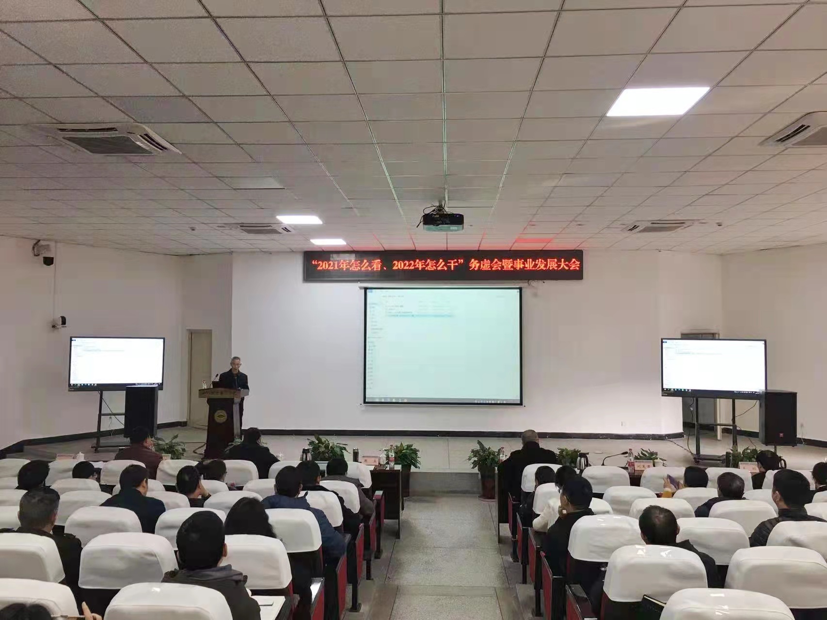 12月24日,学校召开“2021年怎么看、2022年怎么干”务虚会及事业发展大会,党委书记贺兆轩、校长周立以及副校长刘昊君、吴斌、易刚、黄勇出席会议,大会由刘昊君副校长主持。 贺兆轩以“稳中求进 主动作为 推动学校事业高质量发展”为题讲话,指出过去一年学校事业发展“成绩很多、问题不少、未来可期”。讲话从“守牢了一个阵地、打赢了三大战役、推动了系列改革、经受了一些考验、明确了一个愿景——对标双高建设本科”等六个方面总结了学校在贯彻落实党中央决策部署、统筹推进事业发展中取得的主要成绩。同时指出党建引领事业发展还需要进一步加强,干部的创新精神、担当精神和攻坚克难精神一定程度缺乏,高水平人才缺乏、高层次成果较少,基础设施薄弱以及创收收入低等五个方面的突出问题,提出了下一阶段学校的发展思路和重点任务。