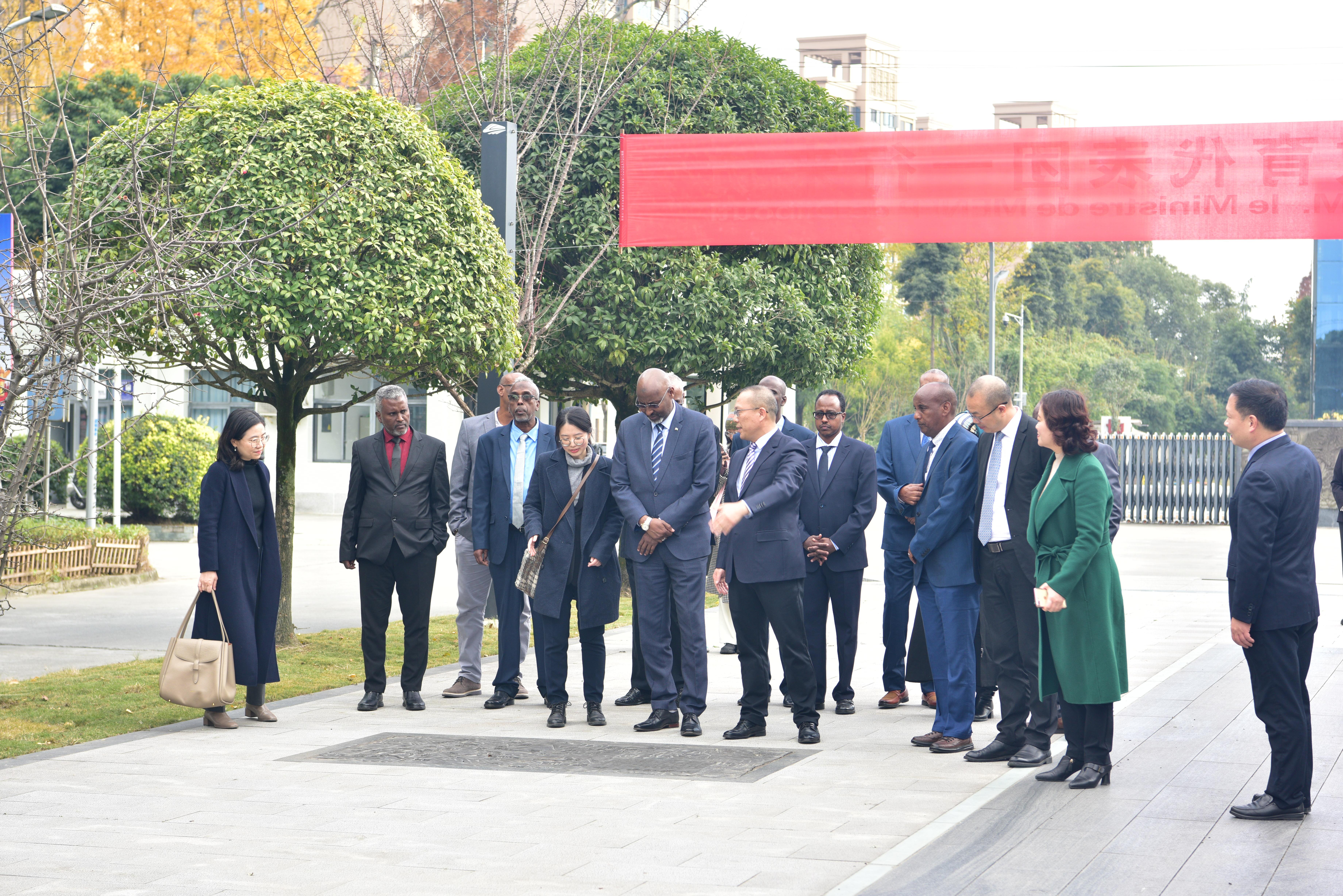 12月14日,吉布提国民教育与职业培训部部长穆斯塔法·穆罕默德·迈哈穆德、总督学迈哈迪·奥马尔·法拉、技术顾问罗恩·赛义德·哈吉·伊斯梅尔、吉布提工商学校校长阿布迪·伽玛·益盖等一行十一人应邀来beat365官网参观交流。学院党委书记贺兆轩、校长赖芳等学校领导接待来访,相关部门负责同志陪同。