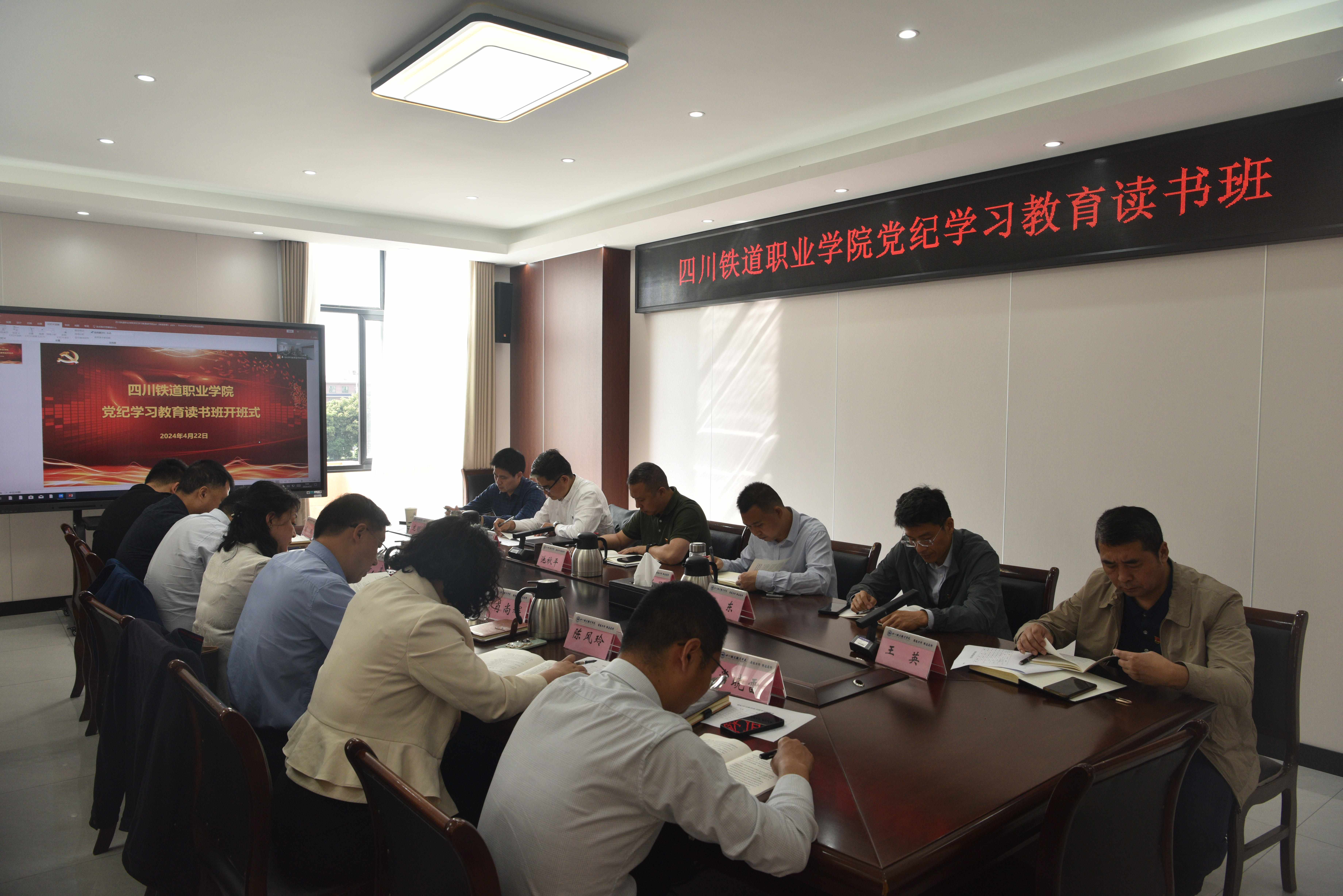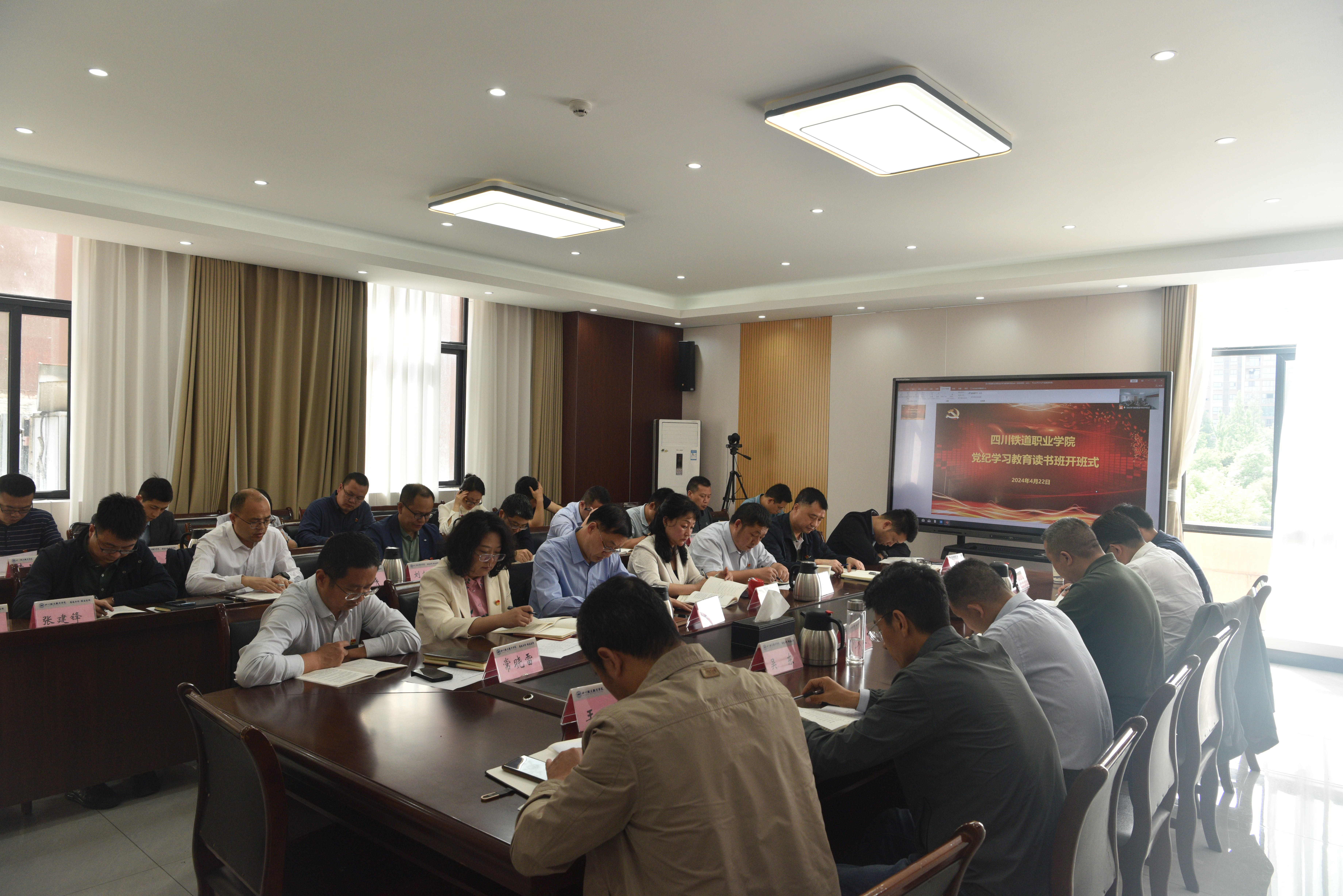 根据党纪学习教育工作安排,4月22日至24日,学校举办党纪学习教育读书班,读书班采用个人自学、集体研讨、领导领学、专家专题辅导等形式进行。学校领导、全体中层干部参加读书班。 4月22日,学校在第三会议室召开党纪学习教育读书班开班仪式。会议要求,举办党纪学习教育读书班,全体党员干部要做到以上率下带头学,先学一步,学深一步,发挥“关键少数”的“头雁效应”;集中精力专门学,举办读书班,就是让党员干部协调好工学矛盾,抽出时间集中精力坐下来、静下心,原原本本学、逐条逐句学;联系实际深入学,党员干部要把自己摆进去、把职责摆进去、把工作摆进去,做到学思悟践,把开展党纪学习教育同落实党中央重大决策部署及省委要求结合起来,同学校年度重点工作和创建“双高”任务紧密结合起来,推动党纪学习教育取得实实在在的成效。