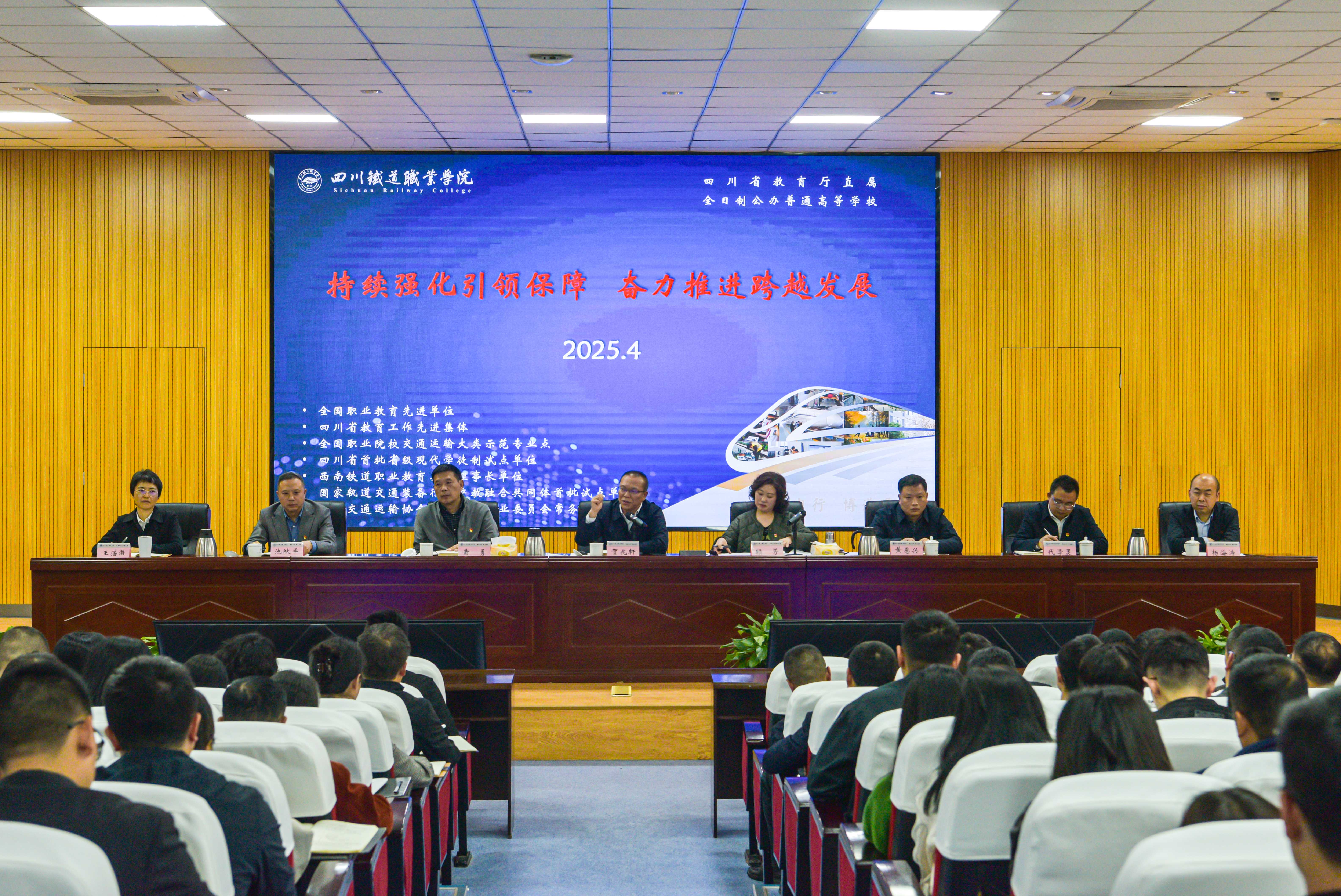 4月7日,学校在学术报告厅召开2025年度党建、思政和全面从严治党工作会,党委书记贺兆轩出席会议并讲话。会议由党委副书记、校长赖芳主持。 会上,党委组织部、党委宣传统战部负责人汇报了2025年学校党建、宣传思想文化和统战工作要点,机车车辆学院和铁道工电学院负责人围绕党建和思政工作谈了工作打算,马克思主义学院、铁道工电学院和学生处相关同志,围绕思政课程、课程思政和“一站式”社区育人进行交流发言。