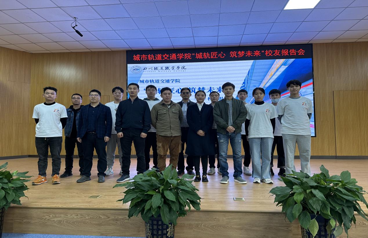 韶光流转,盛事如约。2022年11月8日,即学校建校70周年校庆周的第二天,城市轨道交通学院开展了“奋进七秩谱华章 芳华与共新征程”系列活动。 上午9时,城市轨道交通学院在学校学术报告厅举办“城轨匠心 筑梦未来”专题校友报告会。2006级校友、成都地铁运营三公司9号线运营中心副主任兰平健,2006级校友、成都地铁控制中心副主任徐磊,2009级校友、成都地铁4号线电客车组长肖芳,2009级校友、成都地铁运营四公司安全管理王荣作为本次校友报告会的嘉宾分别做了报告,与师生们共同分享。