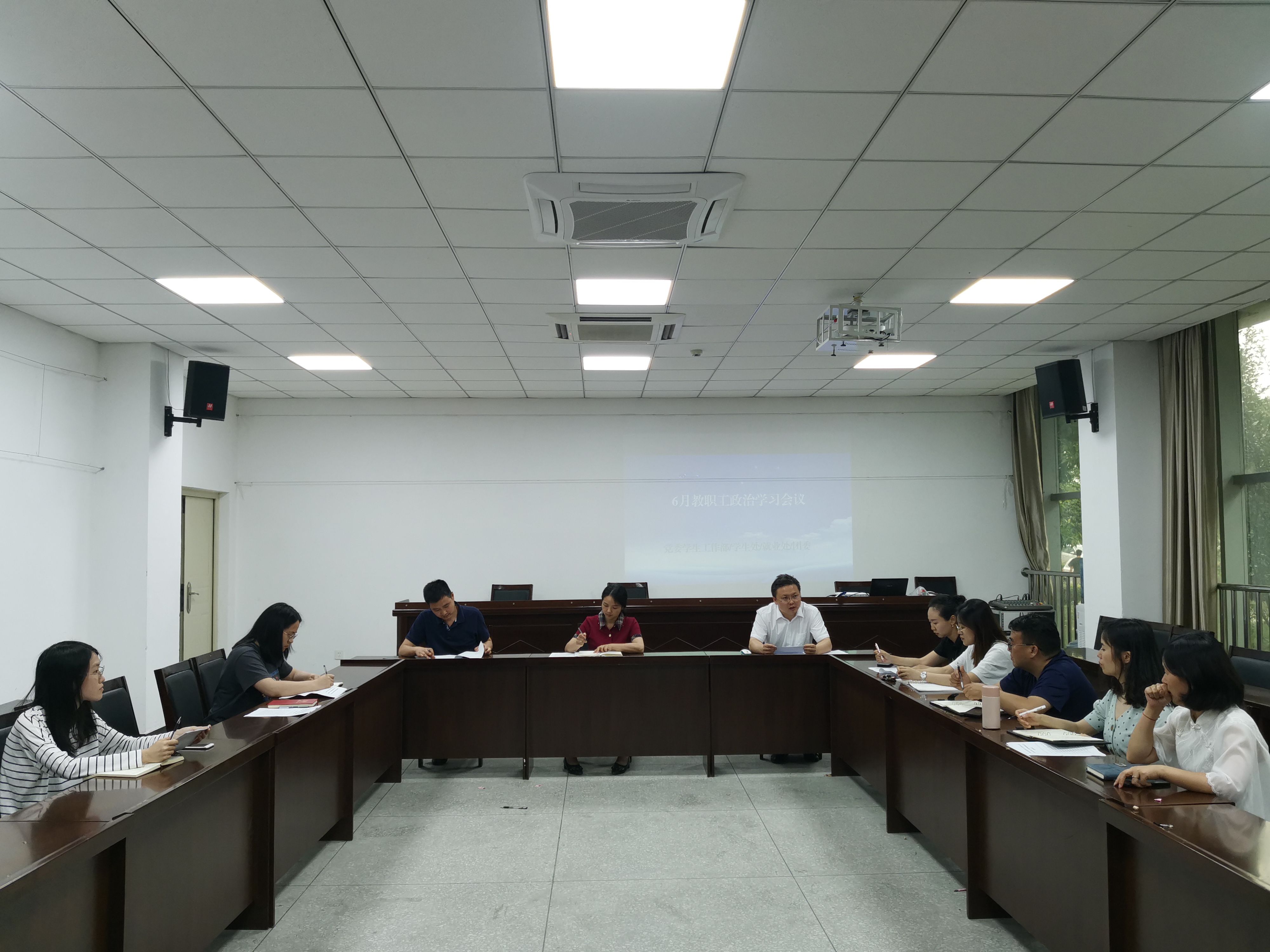 6月13日下午,机关学生工作党支部在行政楼1楼会议室开展6月政治学习。会议深入学习习近平总书记关于安全生产重要论述,集中观看《生命重于泰山》电视专题片,专题学习中国共产党四川省第十二次代表大会精神。党委学生工作部/学生处/就业处、校团委全体教职工参加学习。会议由党支部书记朱俐主持。