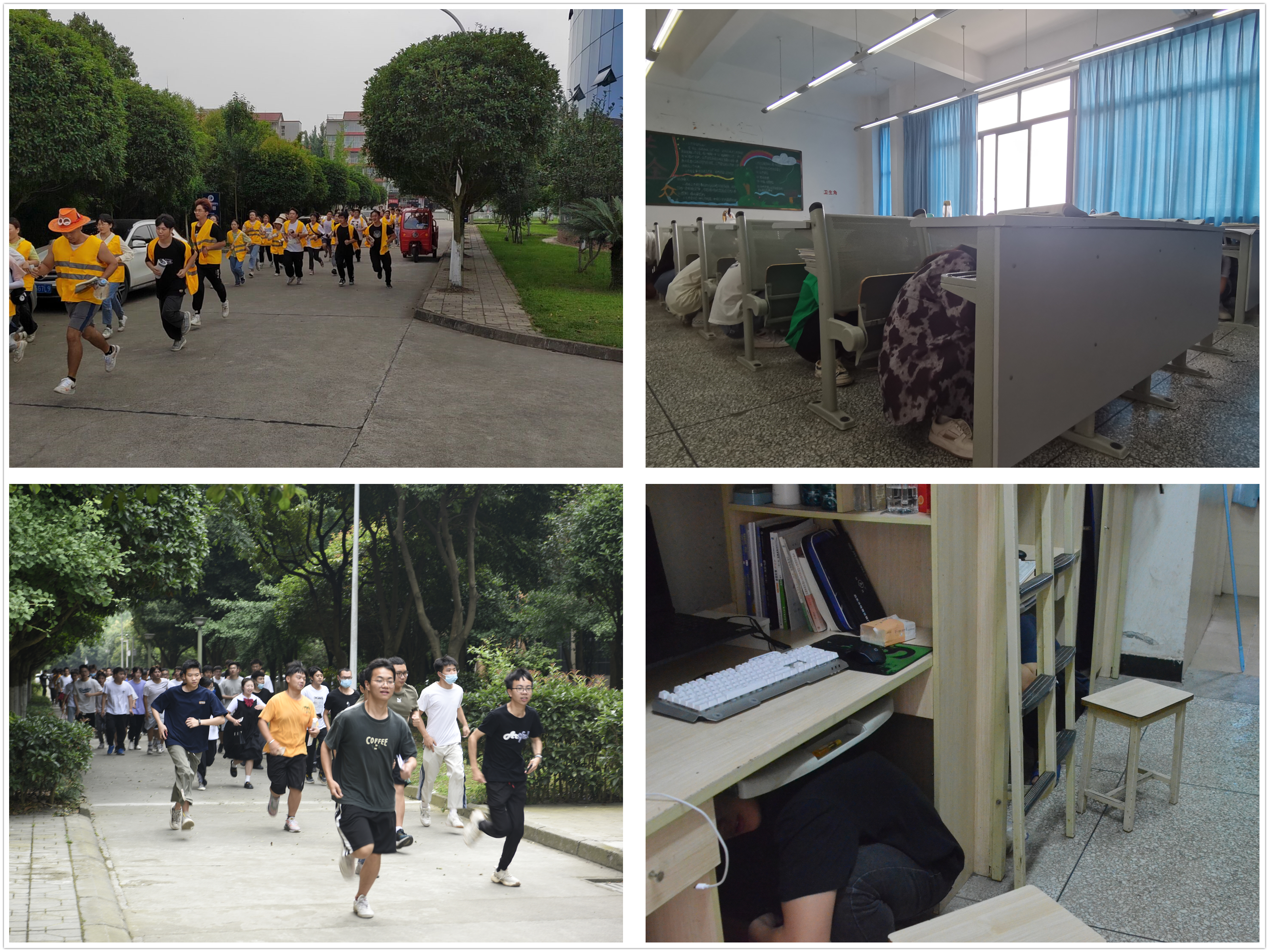 活动前,学校制定了详细的应急疏散预案,明确全体教师的岗位职责和各班学生逃生的路线,以确保演练顺利。15点30分,随着警报声响起,教室、实训场、图书馆、学生公寓等在岗教师迅速组织学生紧急避险,随后按广播指令从各个安全通道紧急疏散到安全空旷的操场紧急避难所。学生们以班为单位迅速整队,清点报告人数。演练过程紧张有序,达到了预期效果。